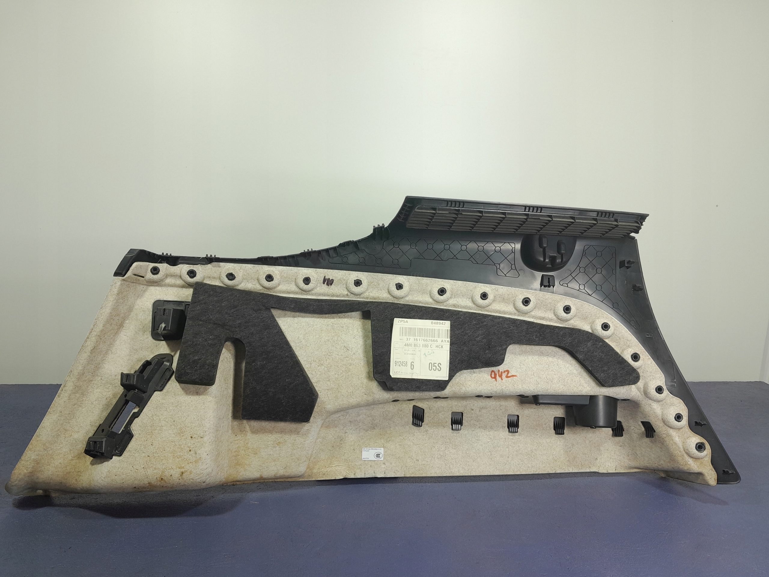 Opis: -jakość B && AUDI Q7 II 4M BOCZEK TAPICERKA BAGAŻNIKA PRAWA 7 OS 4M0863880C