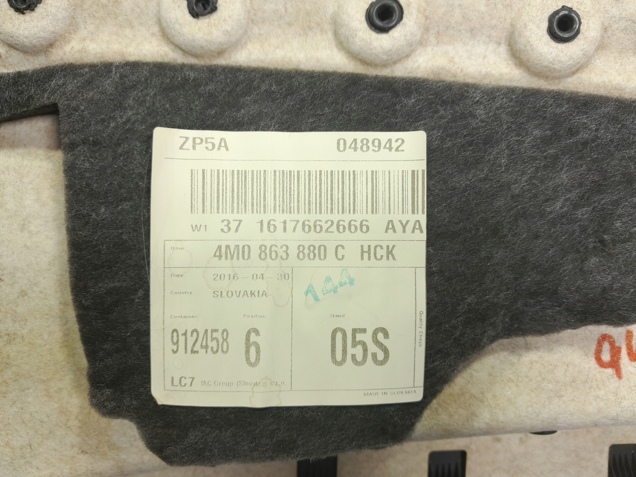 Nr vin pochodzenia części: WAUZZZ4M7GD064194