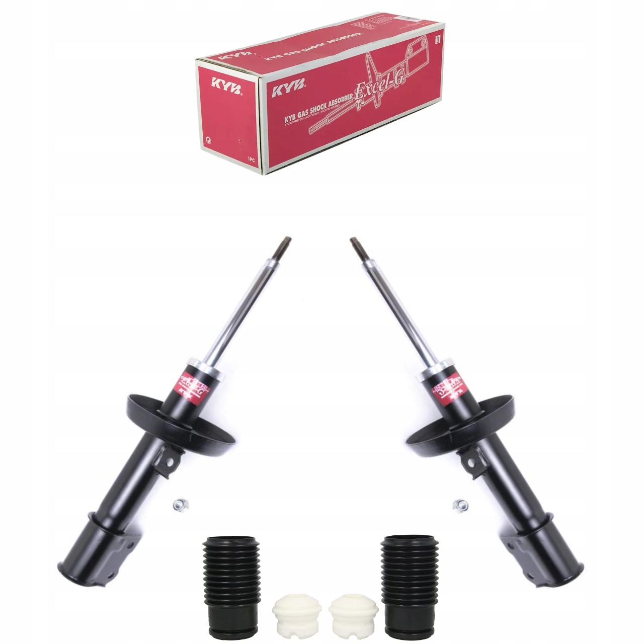 FABRYCZNIE NOWY ZESTAW AMORTYZATORY RENOMOWANEJ MARKI KYB + OSŁONY + ODBOJE