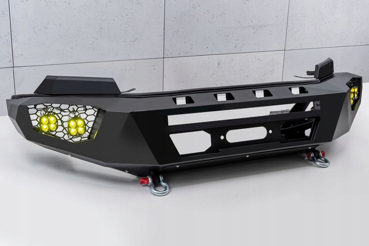 Oferowany model doposażony został w silne mocowania na szekle, które znajdują się w komplecie. Zderzak wyposażony został w dwie lampy LED o mocy 12W każde oraz w dwie szekle. Posiada on również miejsce na instalacje wyciągarki do 5500 kg z liną syntetyczną.