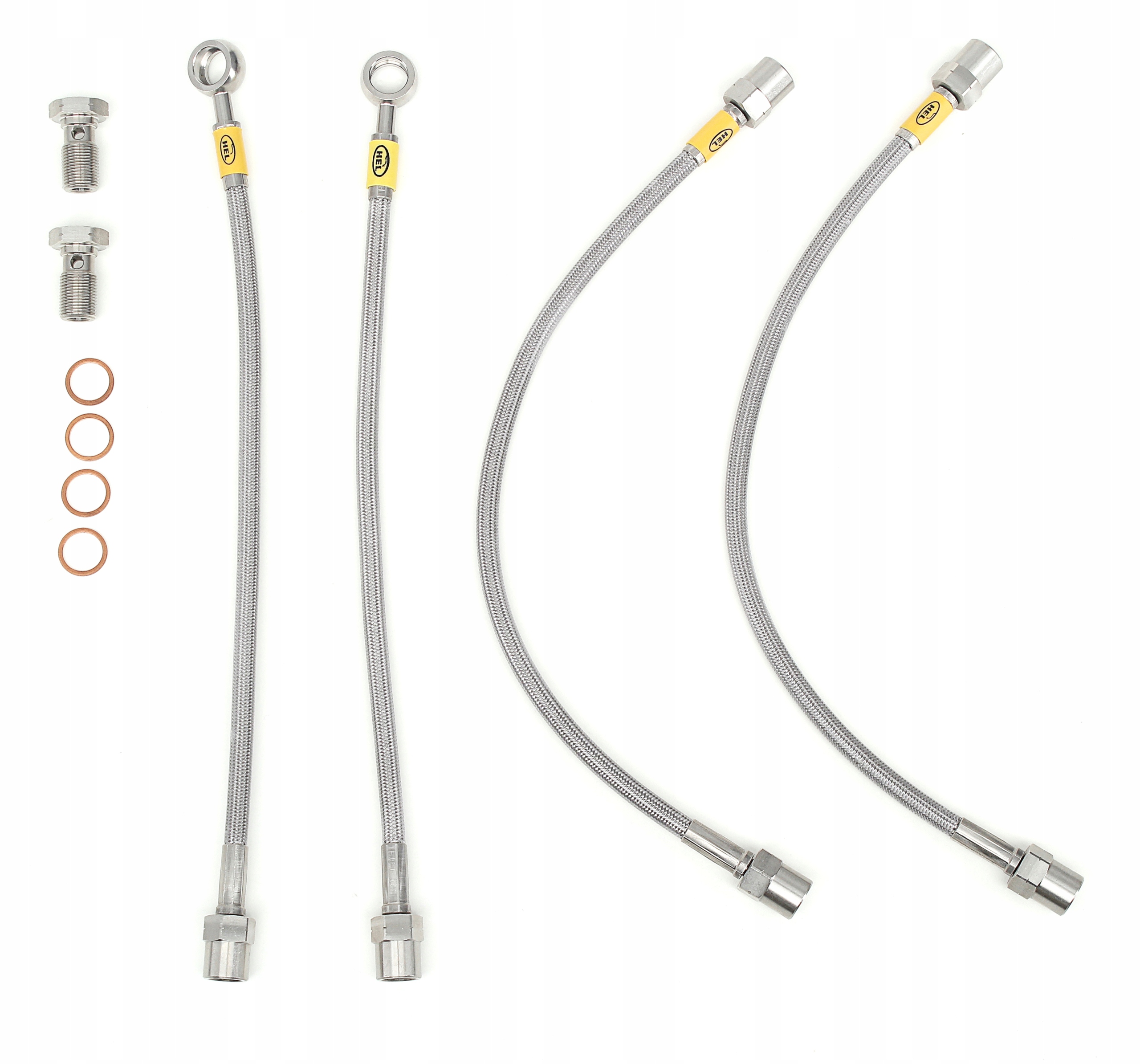 - przewody hamulcowe o odpowiedniej długości, dedykowane do wybranego modelu z zakutymi końcówkami ze stali nierdzewnej