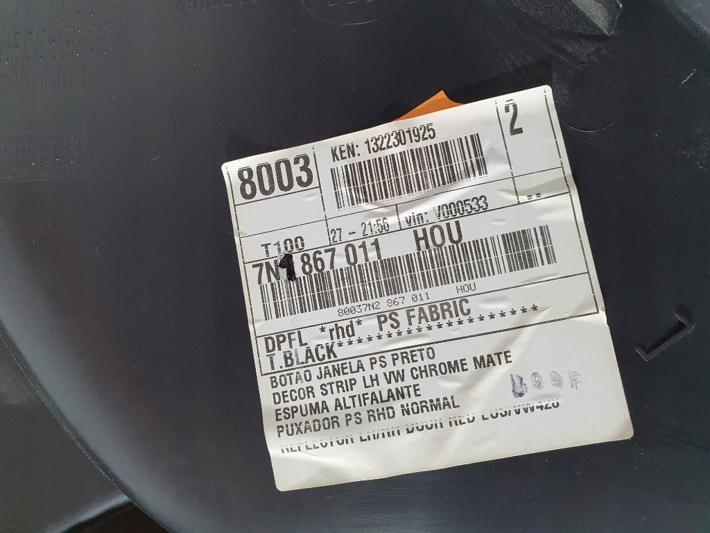 | Каталожний номер запчастини: | Tapicerka, boczek, drzwi, przód, przedni, lewy, 7N1867011N, SHARAN, 7N |