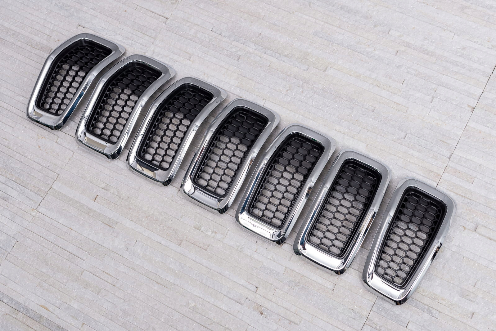 Wkładki grilla chromowane, do JEEP CHEROKEE V (KL) 2014-2018 (wersja przed faceliftingiem).