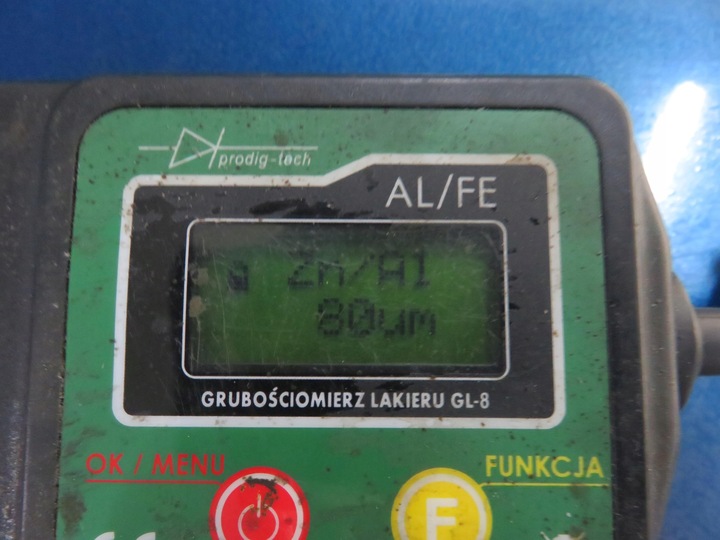 - NIENAPRWIANA , GR. LAKIERU: 80 uM, KOLOR LAKIERU: NIEBIESKI, DROBNE USZKODZENIA LAKIERU W CZOLOWEJ CZESCI MASKI.