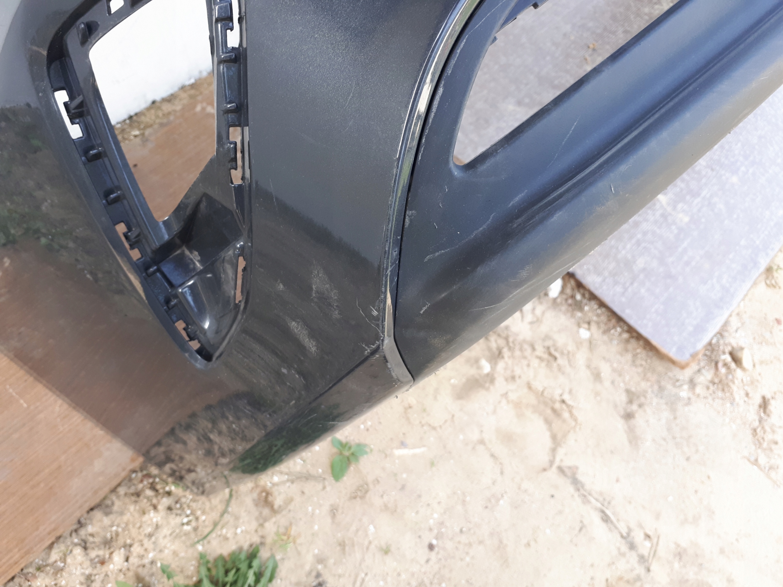 Cena za zderzak tylny. Posiada rysy widoczne na zdjęciach. Mocowanie pęknięte na zdjęciu obok. Brak mocowania dolnego na zdjęciu nr 16. Wersja europejska.