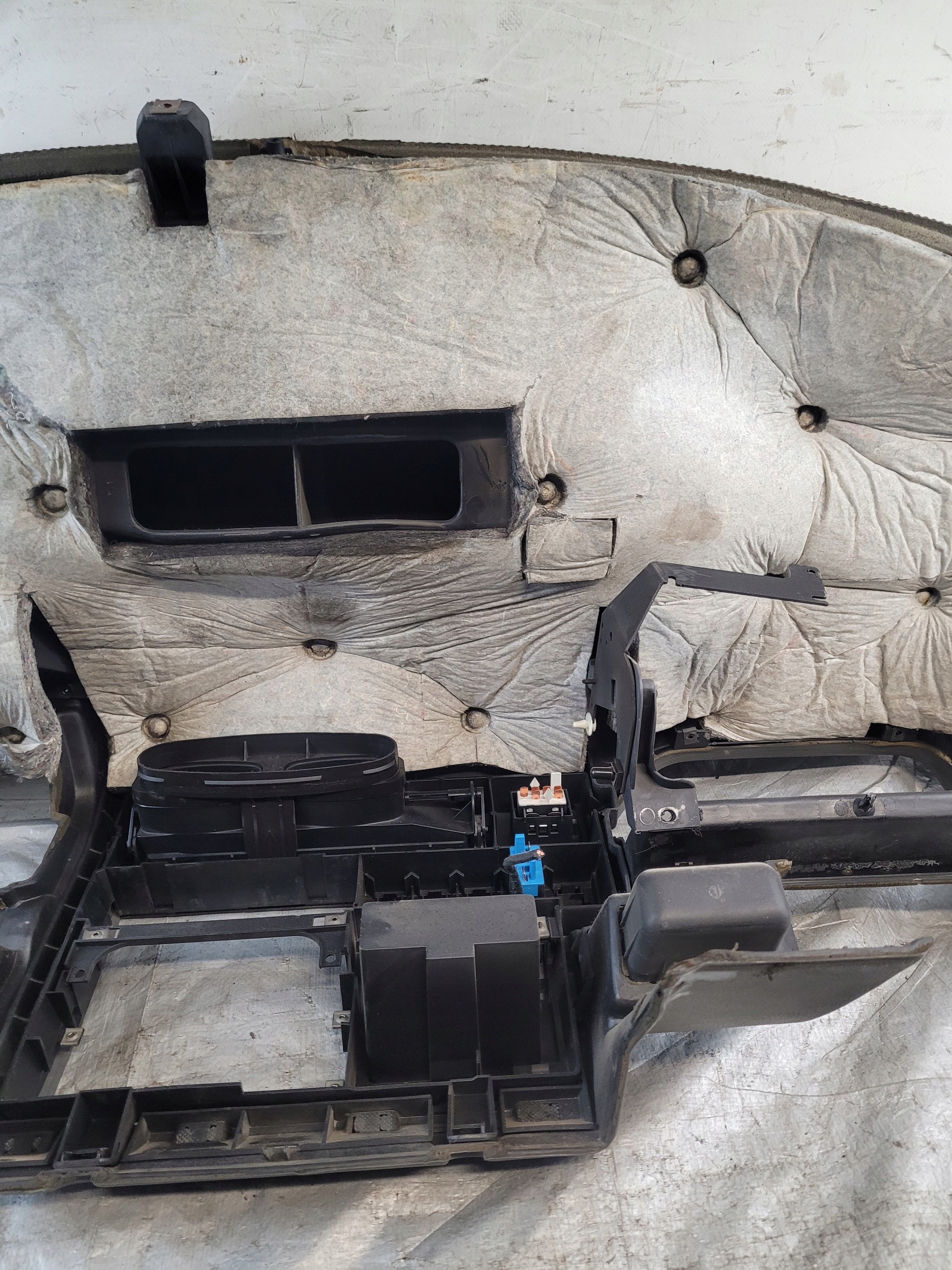 DESKA POSIADA ZARYSOWANIA, PRZEBARWIENIA, ZABRUDZENIA, MAŁE PĘKNIĘCIE PRZY LEWEJ KRAWĘDZI ORAZ PĘKNIĘCIE DOLNEJ CZĘŚCI RAMKI KONSOLI ŚRODKOWEJ.