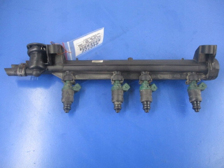 Opis: z 4 zielonymi wtryskami VW AUDI 037906031AA (II,1.6MPi,8V,74kW,100KM,ABS,klima,4d sedan,kod silnika AKL,kod koloru LC9Z) -jakość A && TOLEDO II 1.6 8V AKL LISTWA ZASILAJĄCA WTRYSKOWA 037906031AA