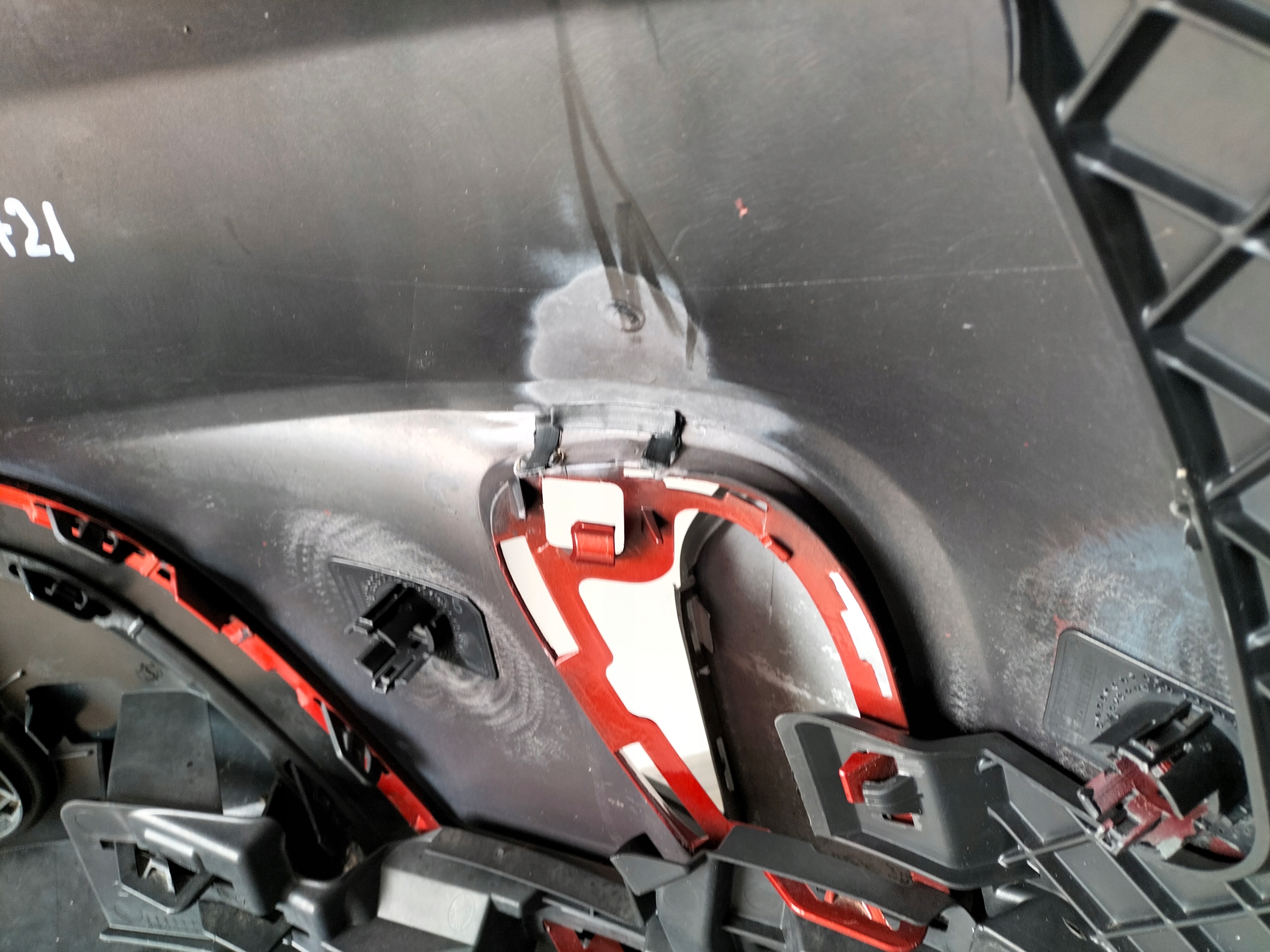 Zderzak przedni przód MERCEDES GLC W253 LIFT 19- wersja pod 6x czujniki PDC bez jednego koszyka w kratce , z prawym ślizgiem