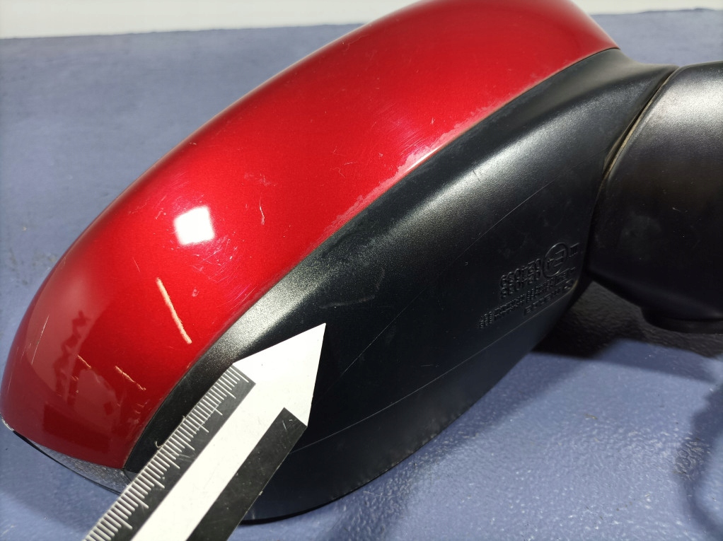 Opis: obudowa posiada zarysowania, elektryczne, podgrzewane, z kierunkowskazem, ilość pin 7, wersja USA, kod koloru 41V Soul Red, -jakość B && MAZDA 6 III GJ LIFT LUSTERKO PRAWE 7 PIN USA 41V