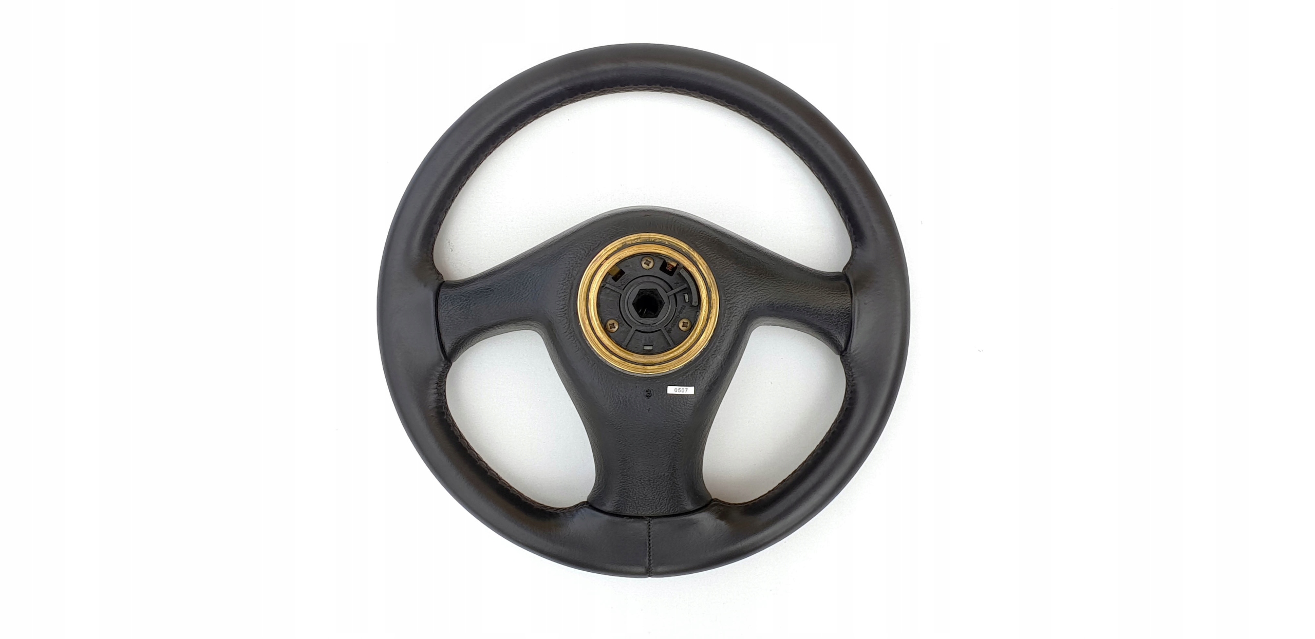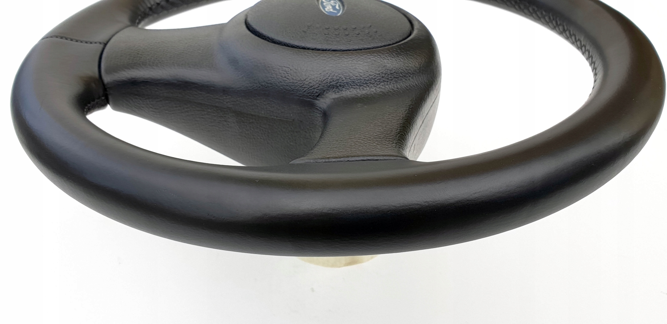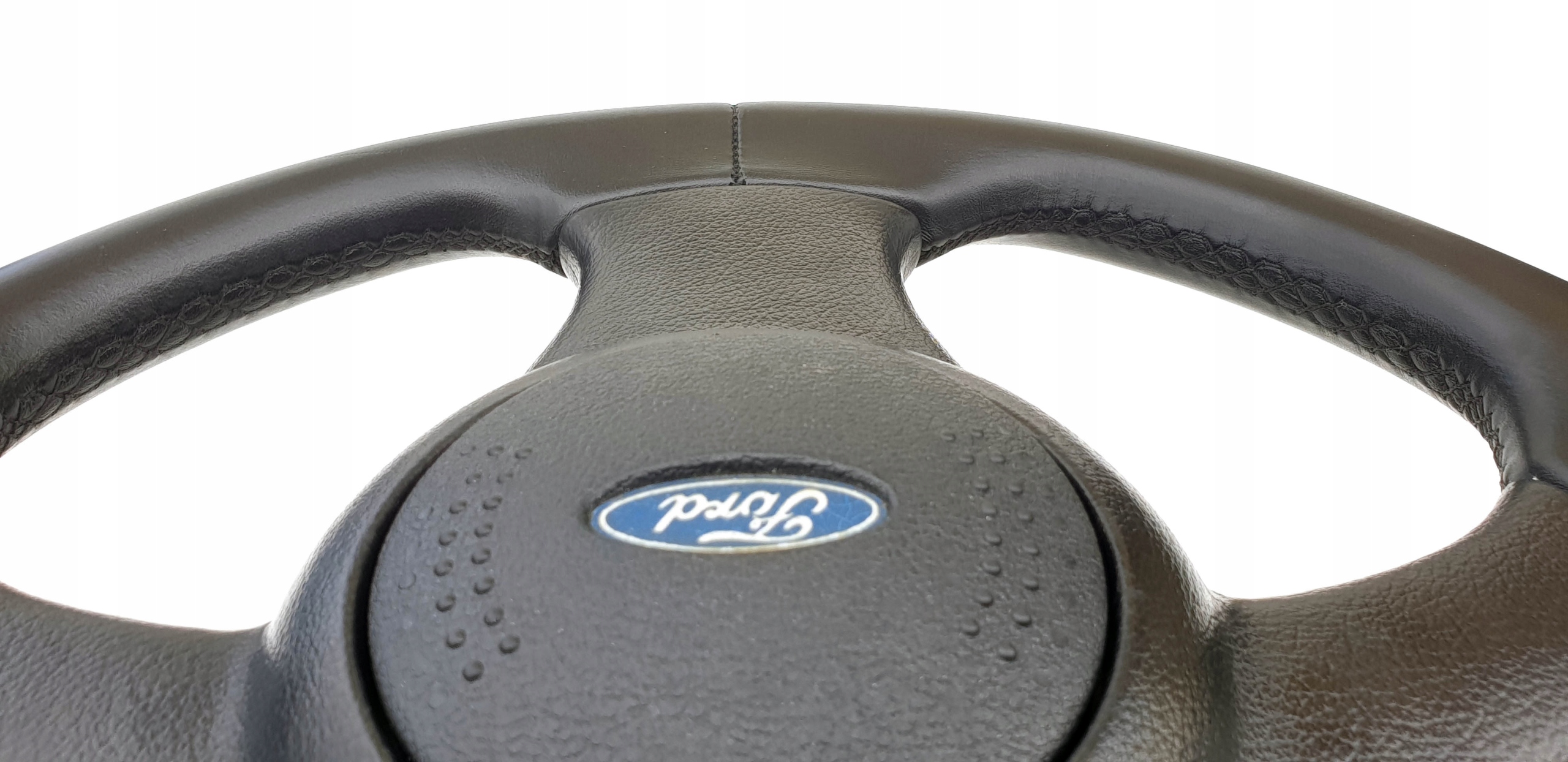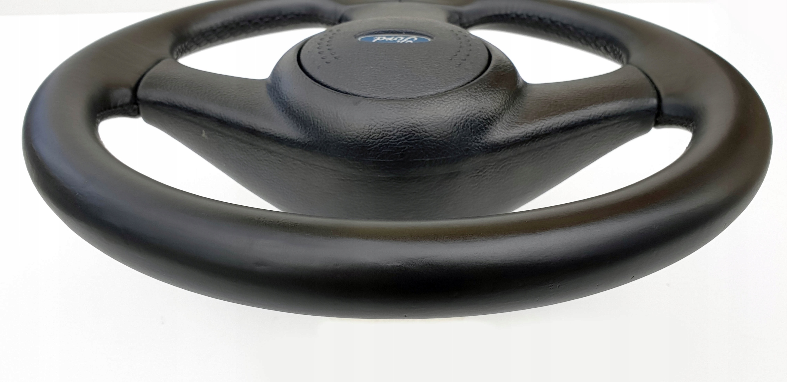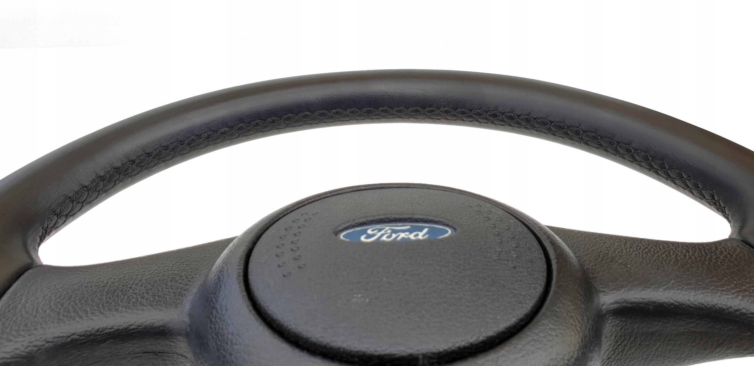 Przedmiotem ogłoszenia jest skórzana kierownica do m.in Forda Escorta mk5. Jest to jak widać wersja bez poduszki powietrznej.