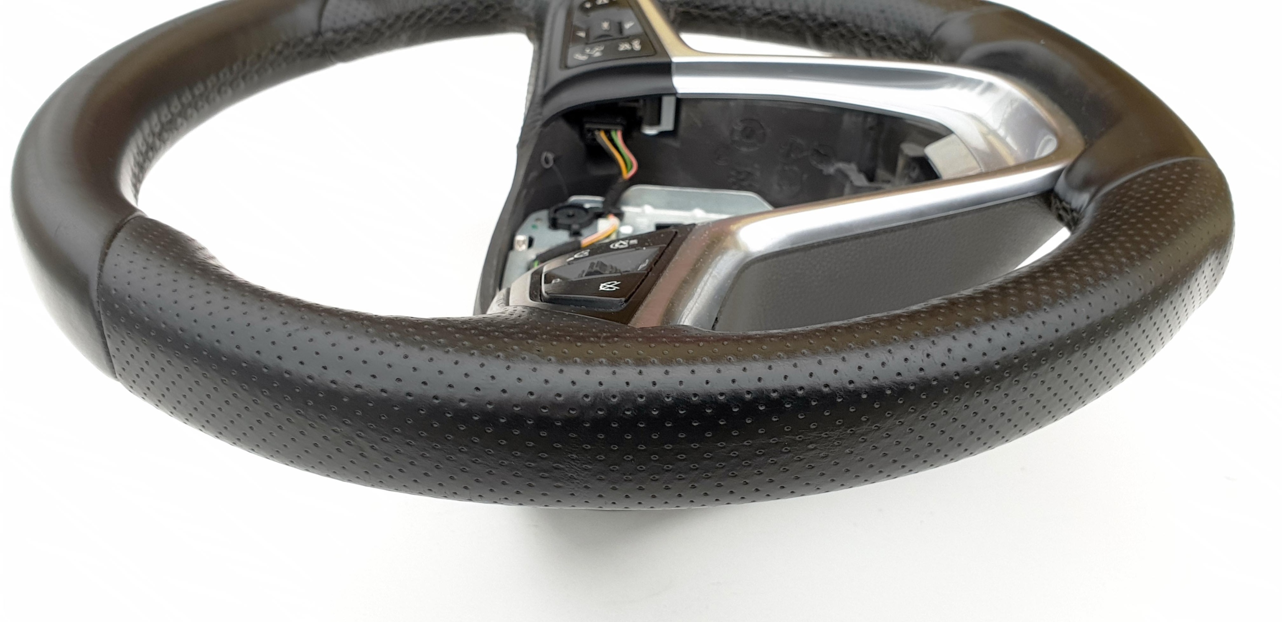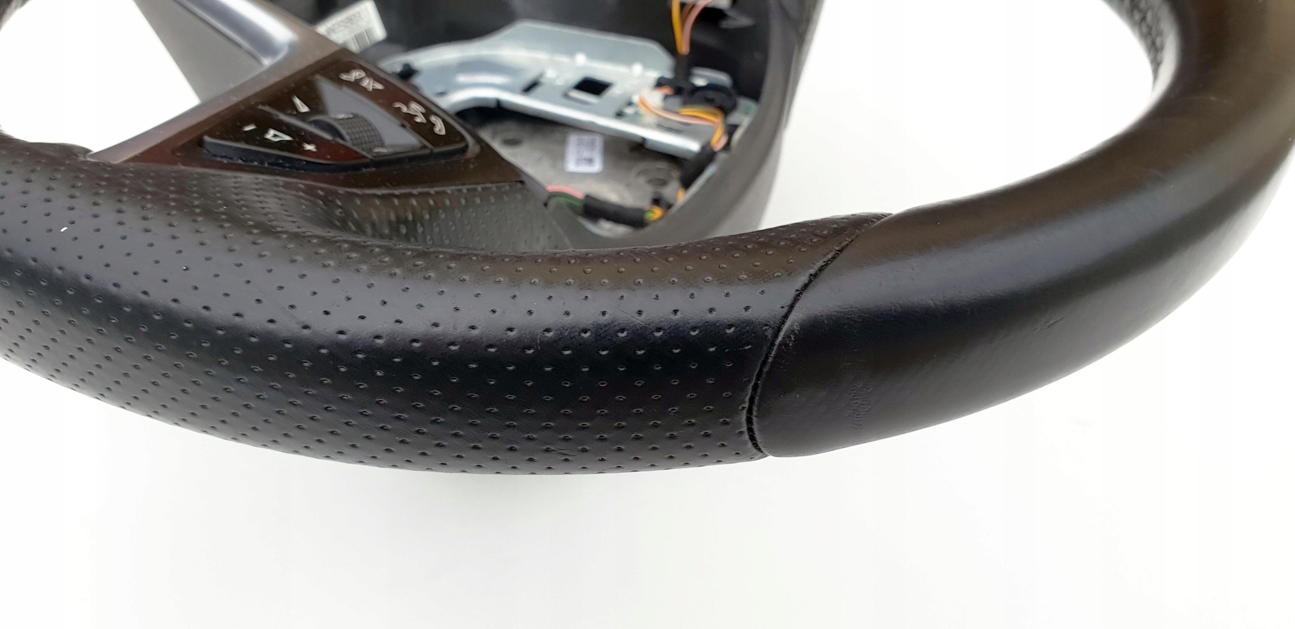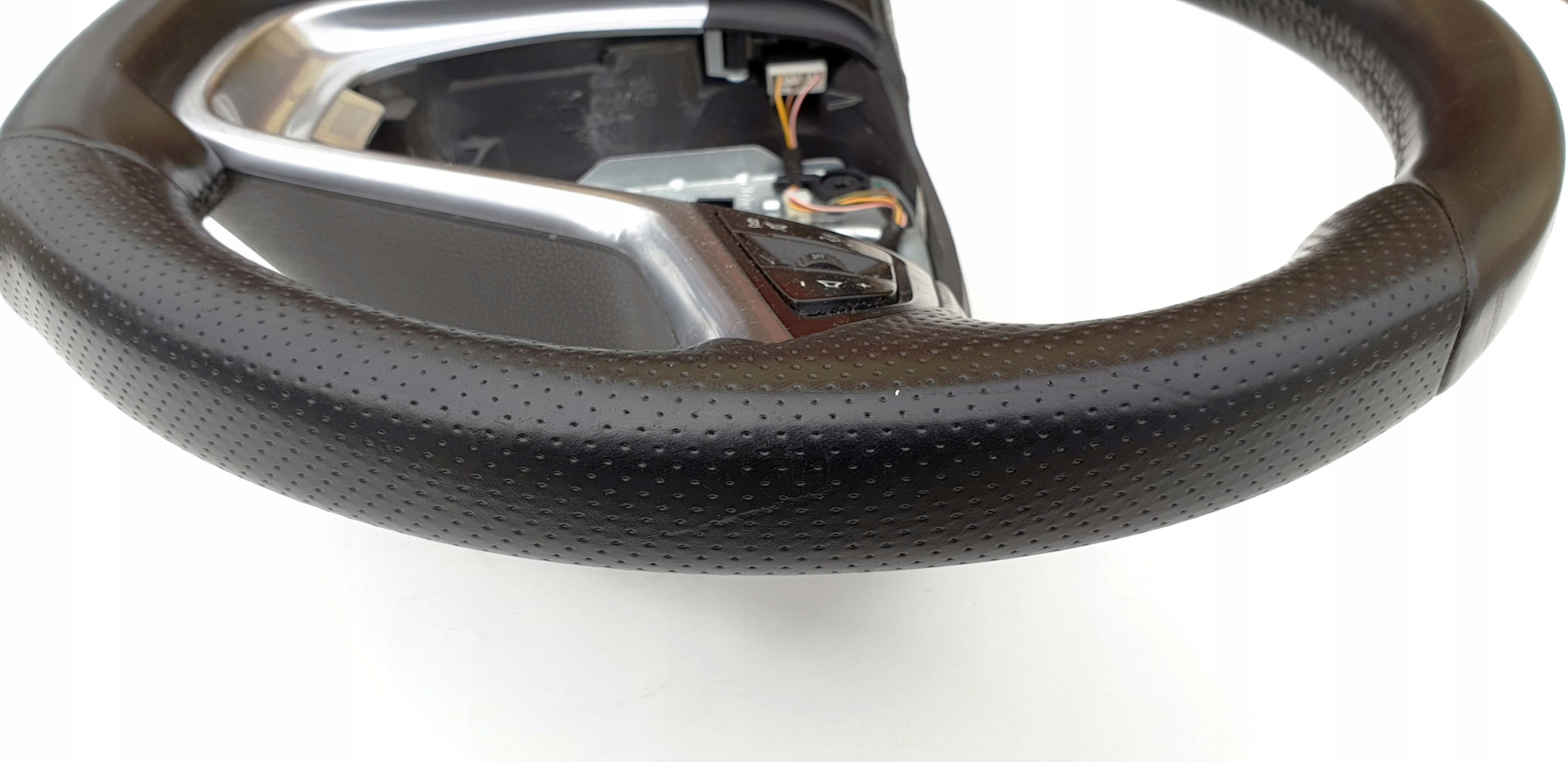 Kierownica ogólnie ładna choć na pewno nie jest to ideał. Skóra cała, nie ma dziur, nie jest szorstka czy powycierana - ogólne fajna, delikatna w dotyku. Nie zauważyłem jakiś odbarwień co mogłoby być oznaką, że niebawem skóra zacznie się wycierać. Oczywiście jakieś zarysowania, wgniotki po obrączce są i to doskonale widać na zdjęciach. W końcu to nie jest nówka. Skóra jest fabryczna i jak przystało na wersję OPC czy OPC line jest ona wzbogacona o gąbkę - fajnie się ją trzyma w ręku. Szwy wszystkie całe, nic nie puściło. Wieloklin cały, frezy bardzo ładnie widoczne. Multifunkcja cała, przyciski ładne. Opis jak zawsze mocno pedantyczny poparty odpowiednią ilością zdjęć do własnej oceny.