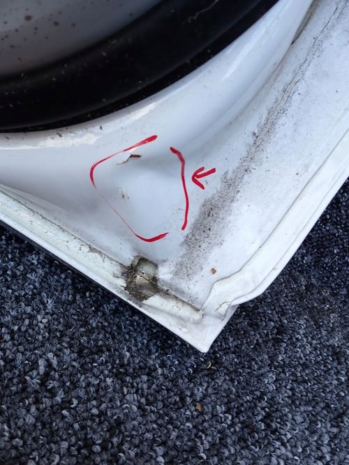 Drzwi w zaznaczonym miejscu uszkodzone