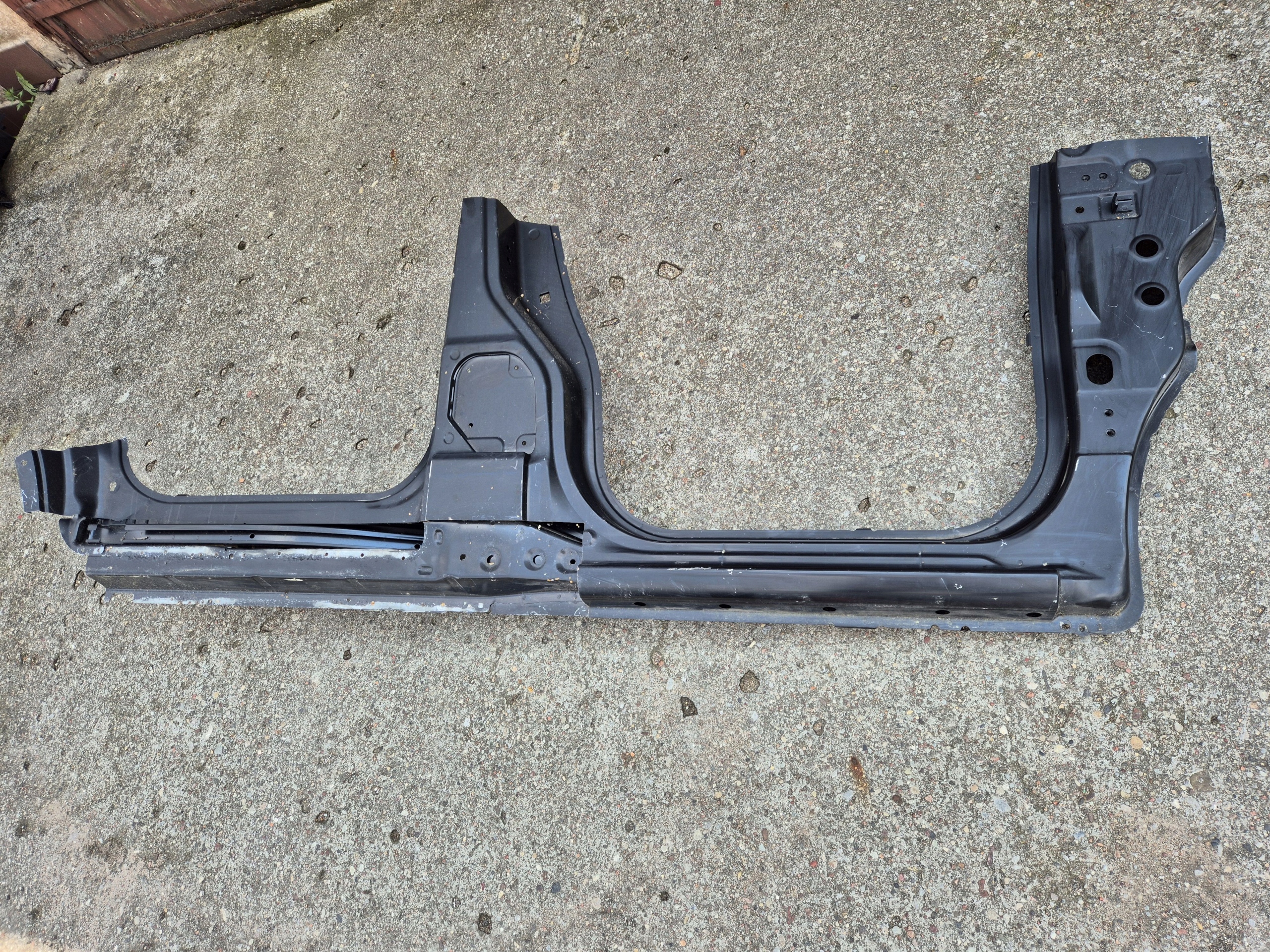 Część oryginalna - nowa. Stan bdb - wycięte poszycie tylnej części progu i tylnego słupka zaznaczone na zdjęciu.