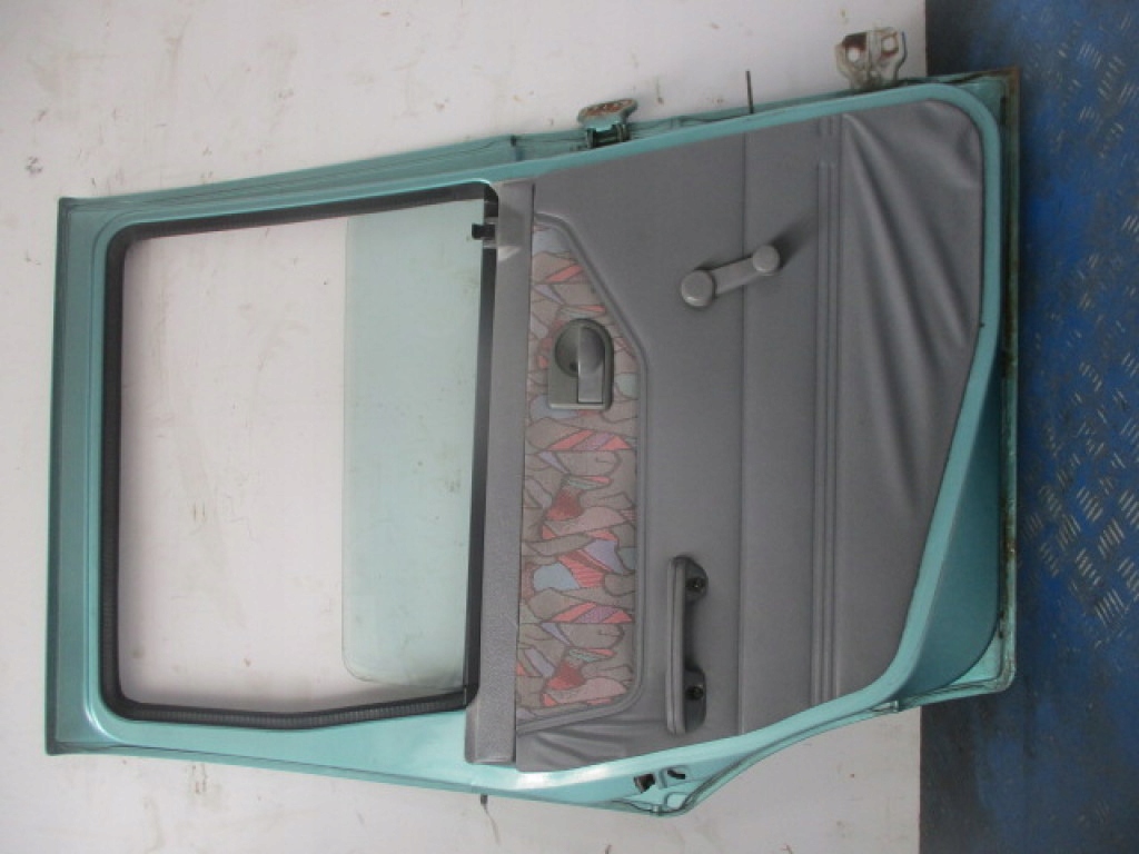 Opis: wersja europejska, oryginał, zielone, kompletne, z podnośnikiem szyby zwykłym, zamkiem zwykłym, kilka mikro wgniotek (0.8E,6V,30kW,41KM,5d H/B,kod koloru 43U) -jakość A && DAEWOO TICO KOMPLETNE DRZWI TYŁ LEWE 43U