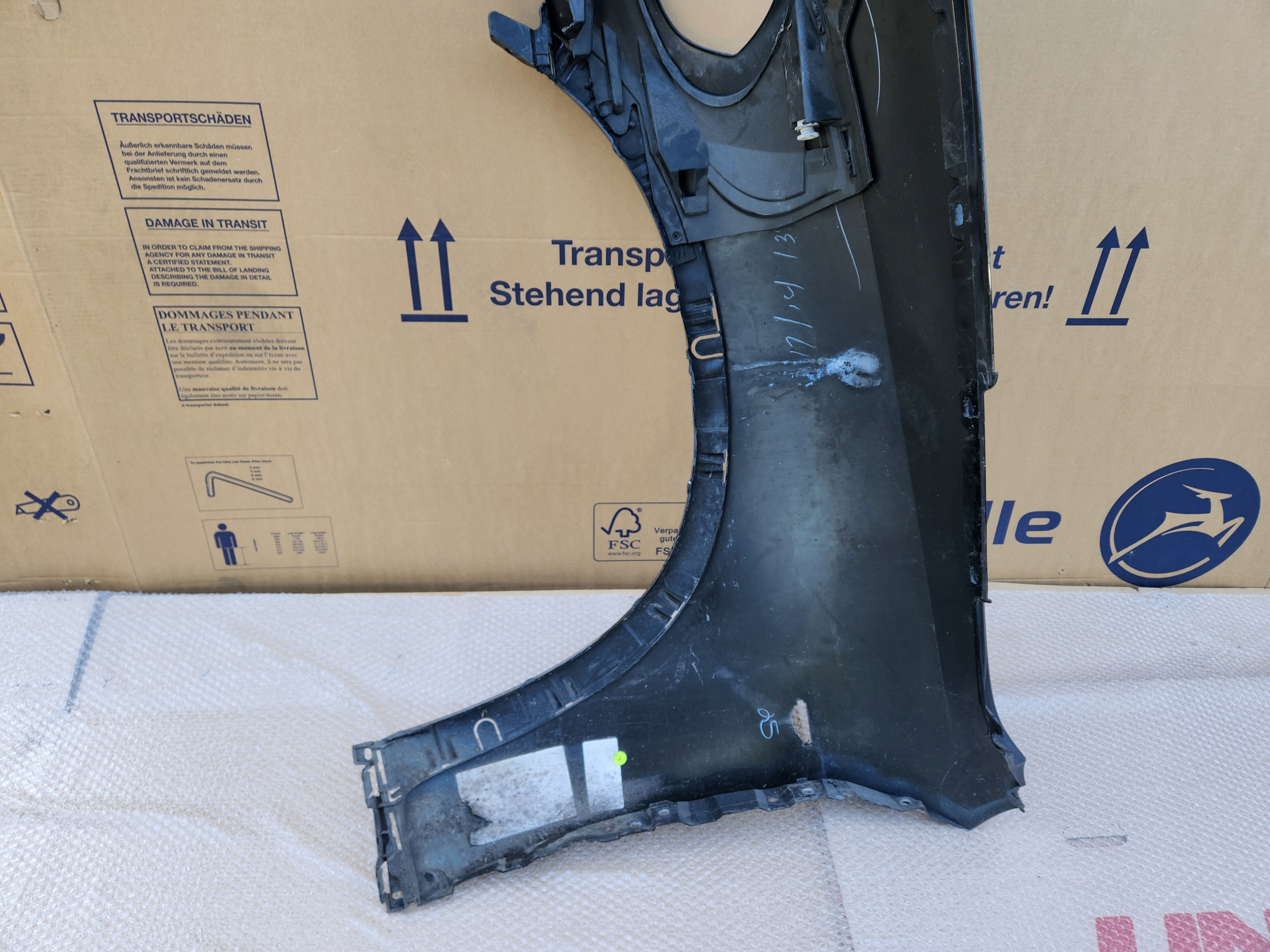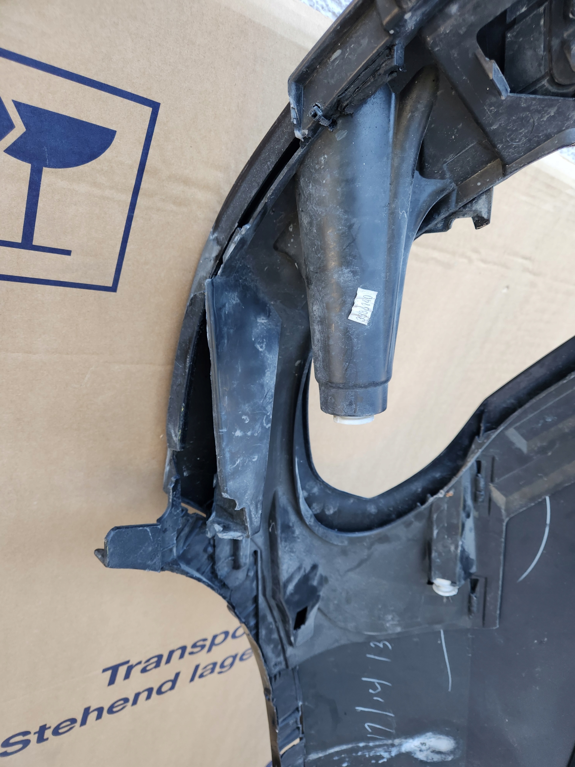 Oryginalny blotnik przedni prawy. BMW X5 E70 LIFTING 10->.Uszkodzony ślizg wewnętrzny blotnika.