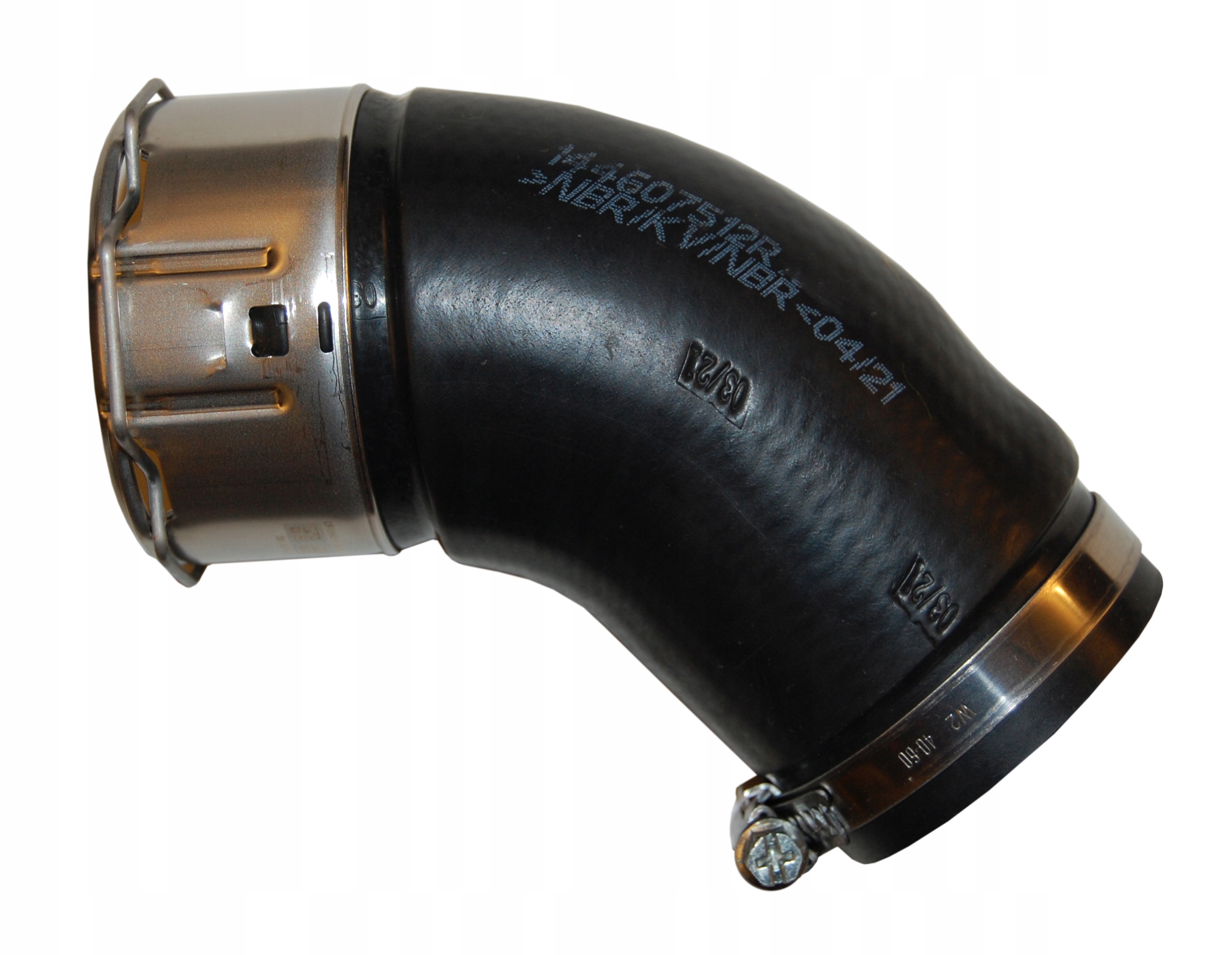 Oferowany przewód to wąż ciśnieniowy powietrza, wzmacniany tekstylnie (w oplocie sznurowym z włókna kevlarowego). Jest oczywiście nowy. Polimerowy skład mieszanki (>NBR/CR<) z jakiej został wykonany sprawia, że został przeznaczony do pracy w układzie turbodoładowania silnika, tj. w wysokiej temperaturze, pod wysokim ciśnieniem i jest odporny na kontakt z olejem, pojawiającym się w układzie turbodoładowania. Jego kształt jest identyczny z przewodem oryginalnym. Jest to o tyle istotne, że w czasie jazdy przewód pracuje i nie może się załamywać, ani nigdzie obcierać.