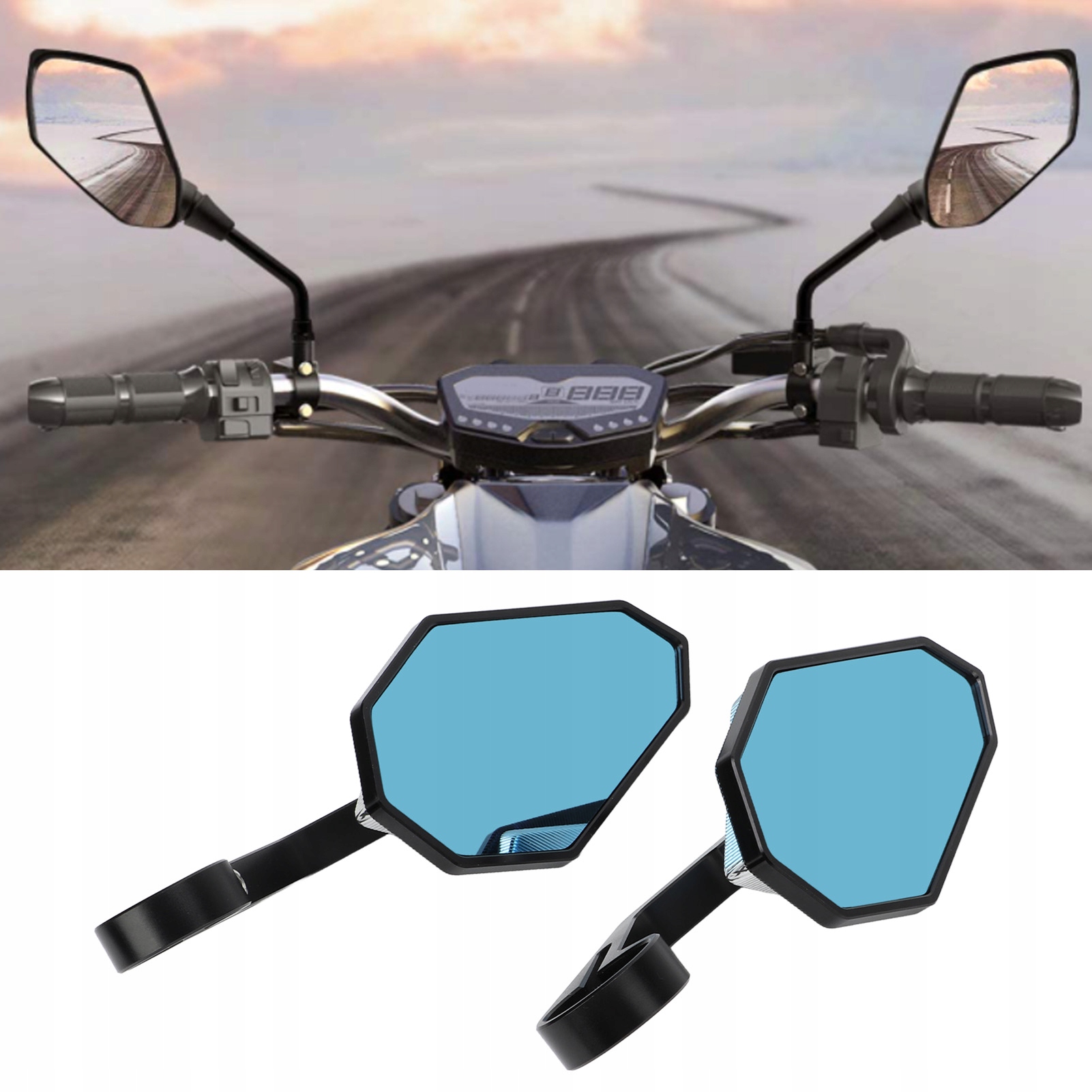 Para lusterek wstecznych motocykla Mocowanie końcowe kierownicy Lewy prawy Płaski niebieski Przeciwodblaskowy Uniwersalny czarny + biały