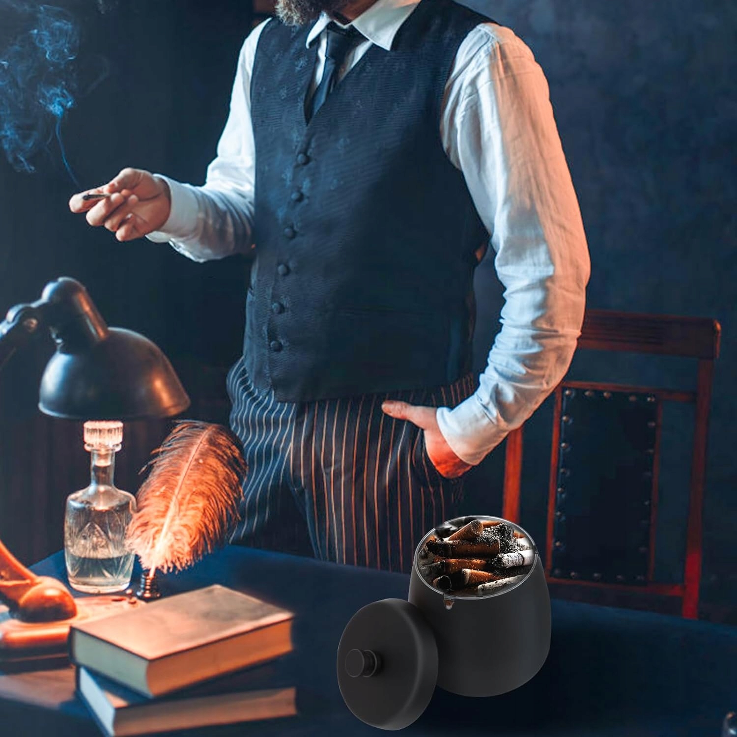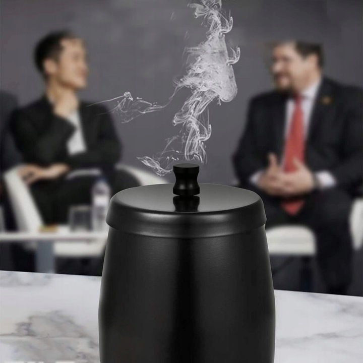 Popielniczka z pokrywką ze stali nierdzewnej: zapachoszczelna popielniczka ma wysoką krawędź i zakrytą konstrukcję, która nie tylko zapobiega rozsypywaniu się popiołu i niedopałków, ale także skutecznie blokuje rozprzestrzenianie się dymu, redukuje nieprzyjemne zapachy i utrzymuje biurko w czystości przez cały czas . Pożegnaj brudne i śmierdzące tradycyjne popielniczki i stwórz dla siebie zdrowe środowisko do palenia.