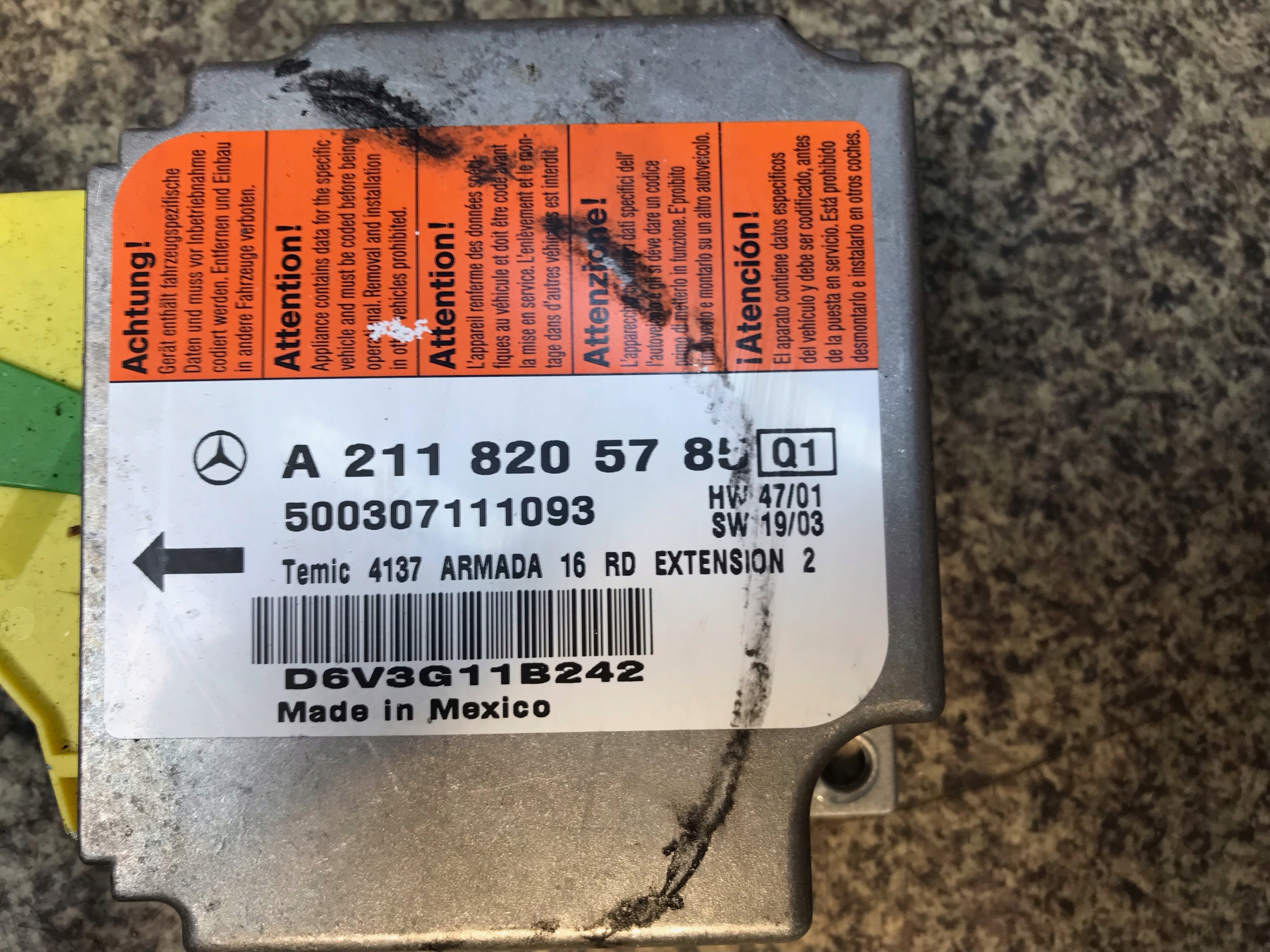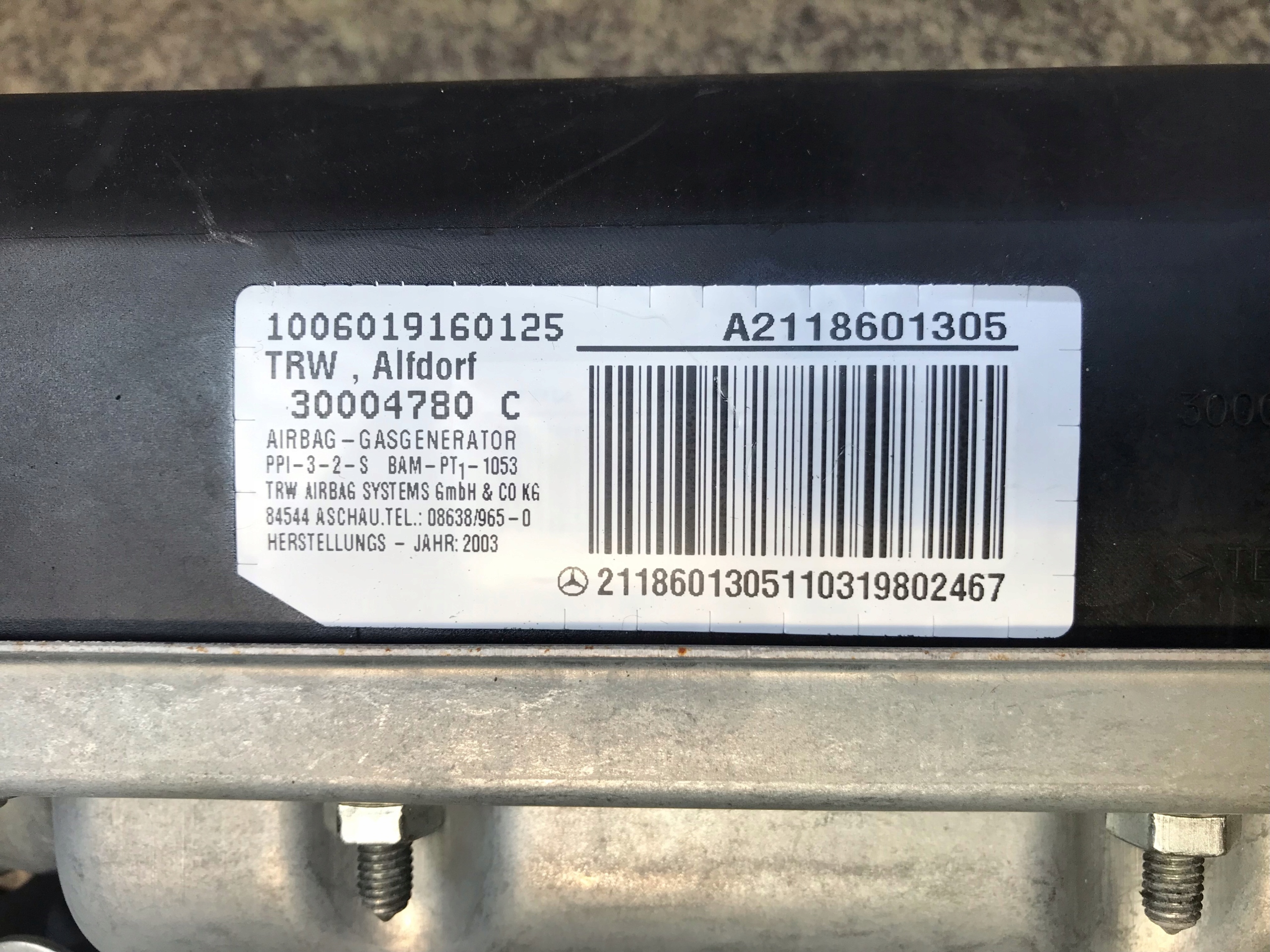 Kod czesci: Modul: A2118205785 | Poduszka pasazera: A2118601305 | Pasy przod: Lewy 2118600185, Prawy 2118600285.