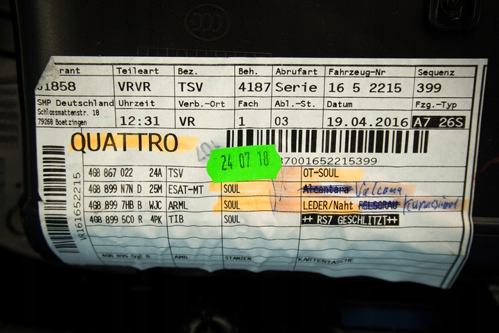 Przedmiotem sprzedaży jest boczek/tapicerka prawych przednich drzwi do Audi A7/S7/RS7 4G8 z pakietem skórzanym Audi Exclusive (Valcona)