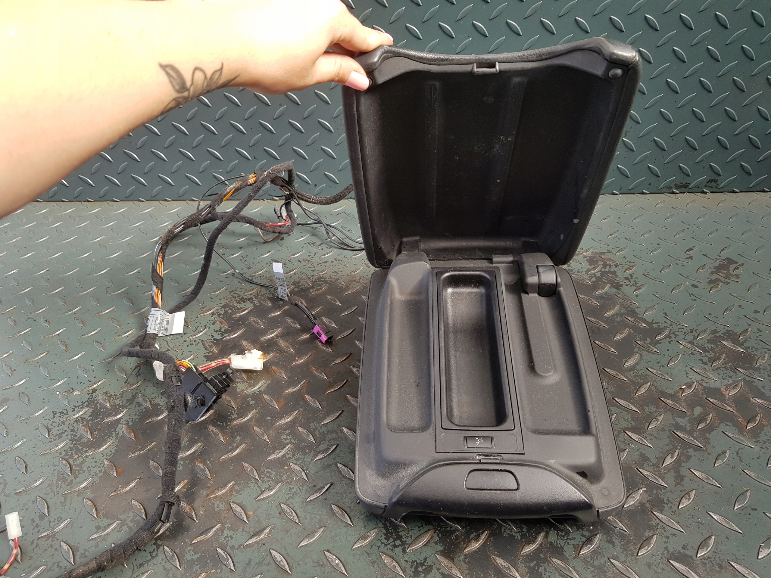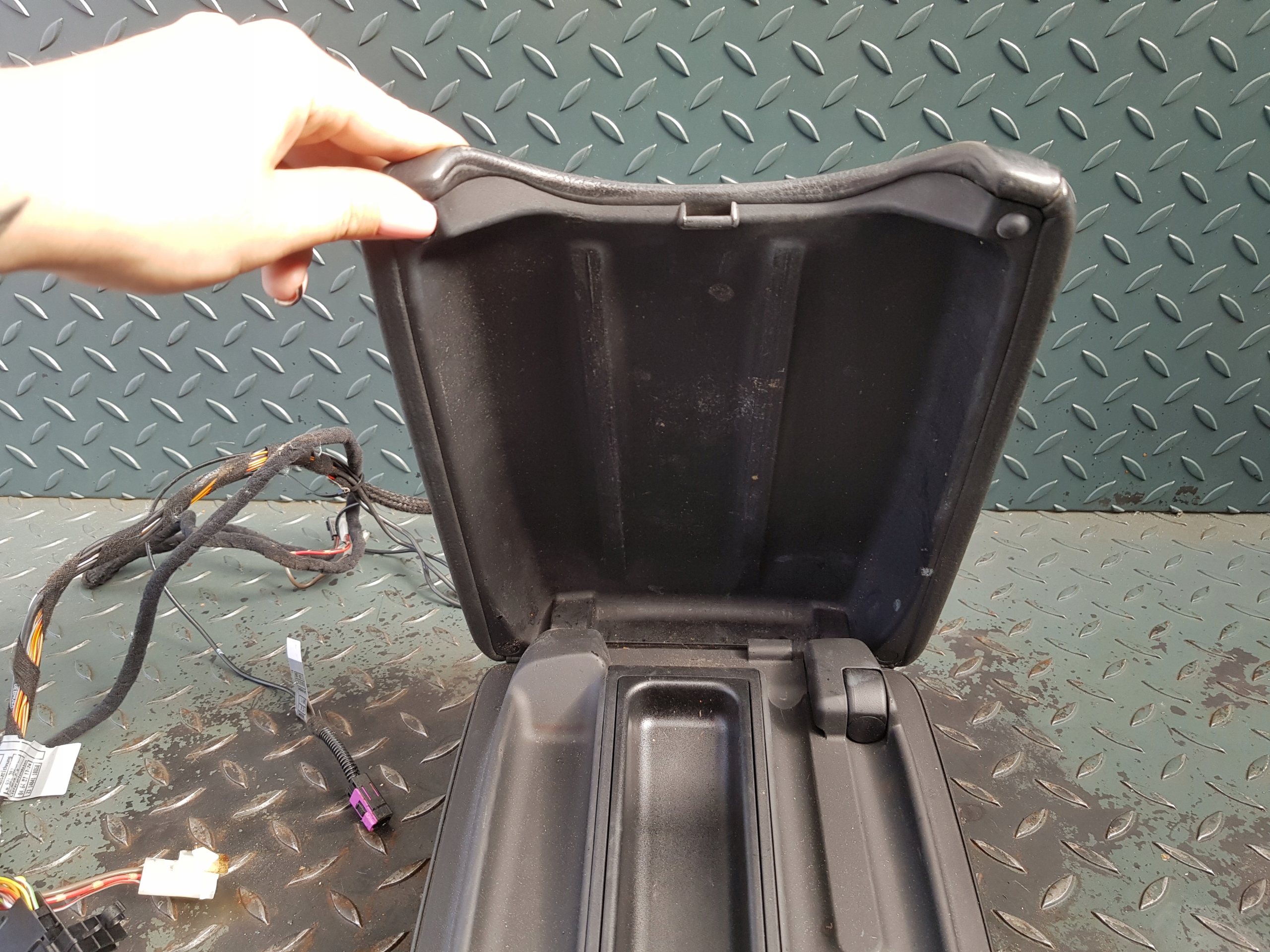 Podłokietnik tunelu środkowego skórzany, schowek telefonu