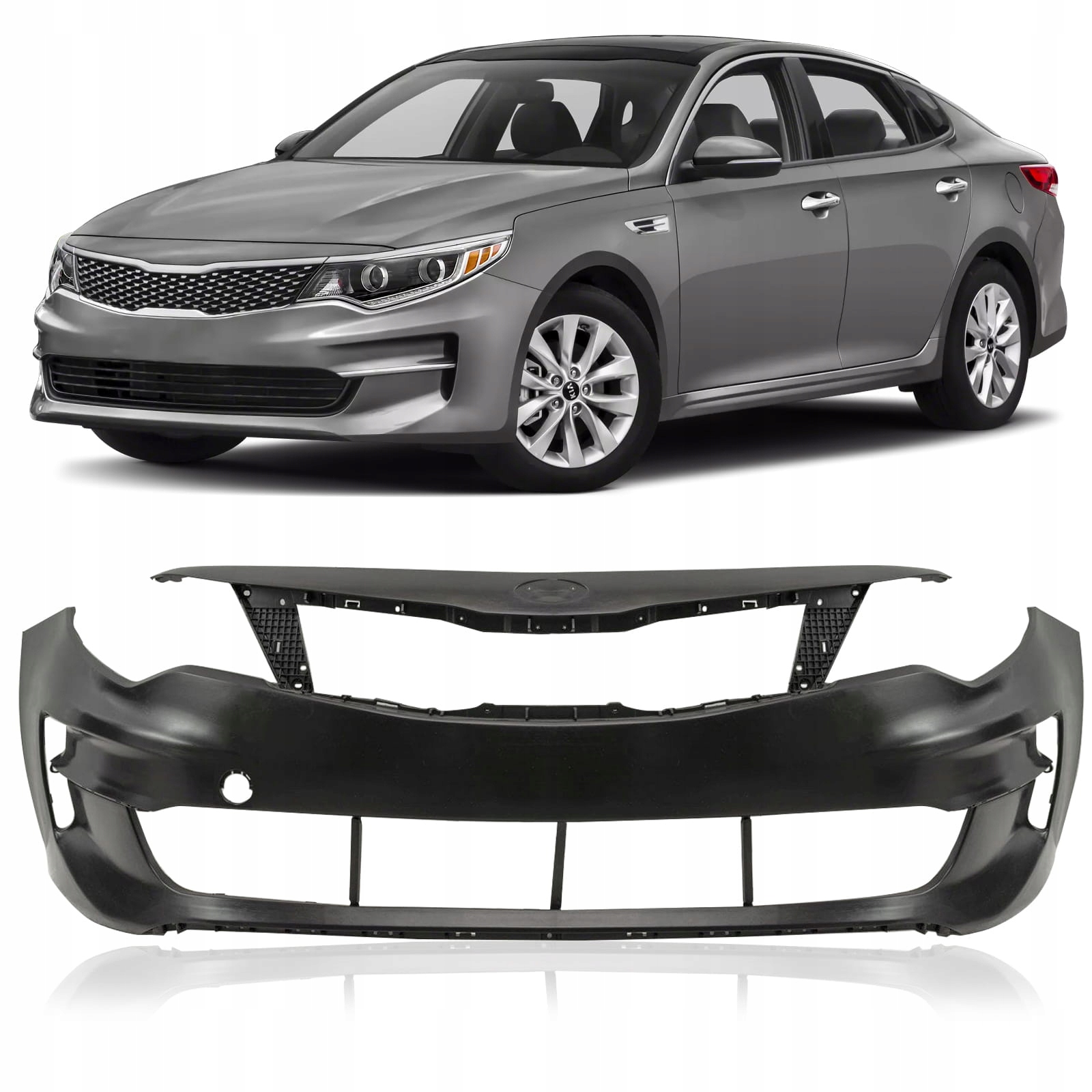 Zderzak przedni bez otworów pod czujniki parkowania PDC, dla KIA OPTIMA IV (JF) 2015-2018 (wersja SEDAN przed liftingiem). W sprzedaży posiadamy także: