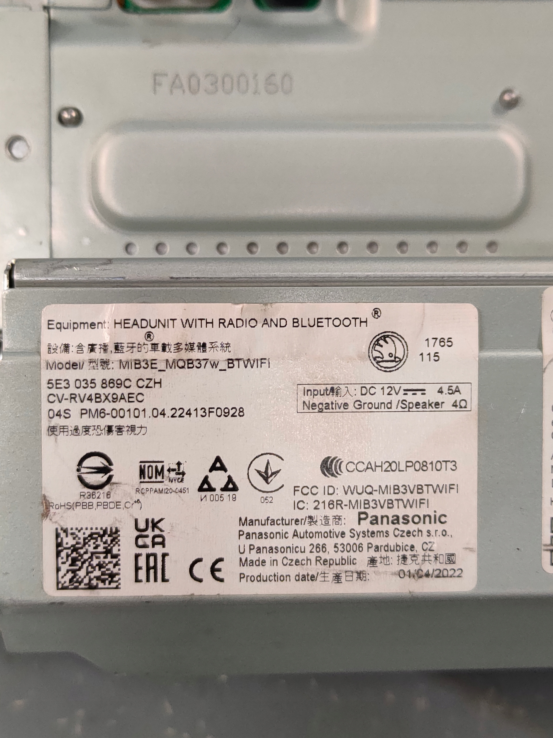 | Оригінальний каталожний номер: | SEAT VW, 5E3035869C, MIB3 |