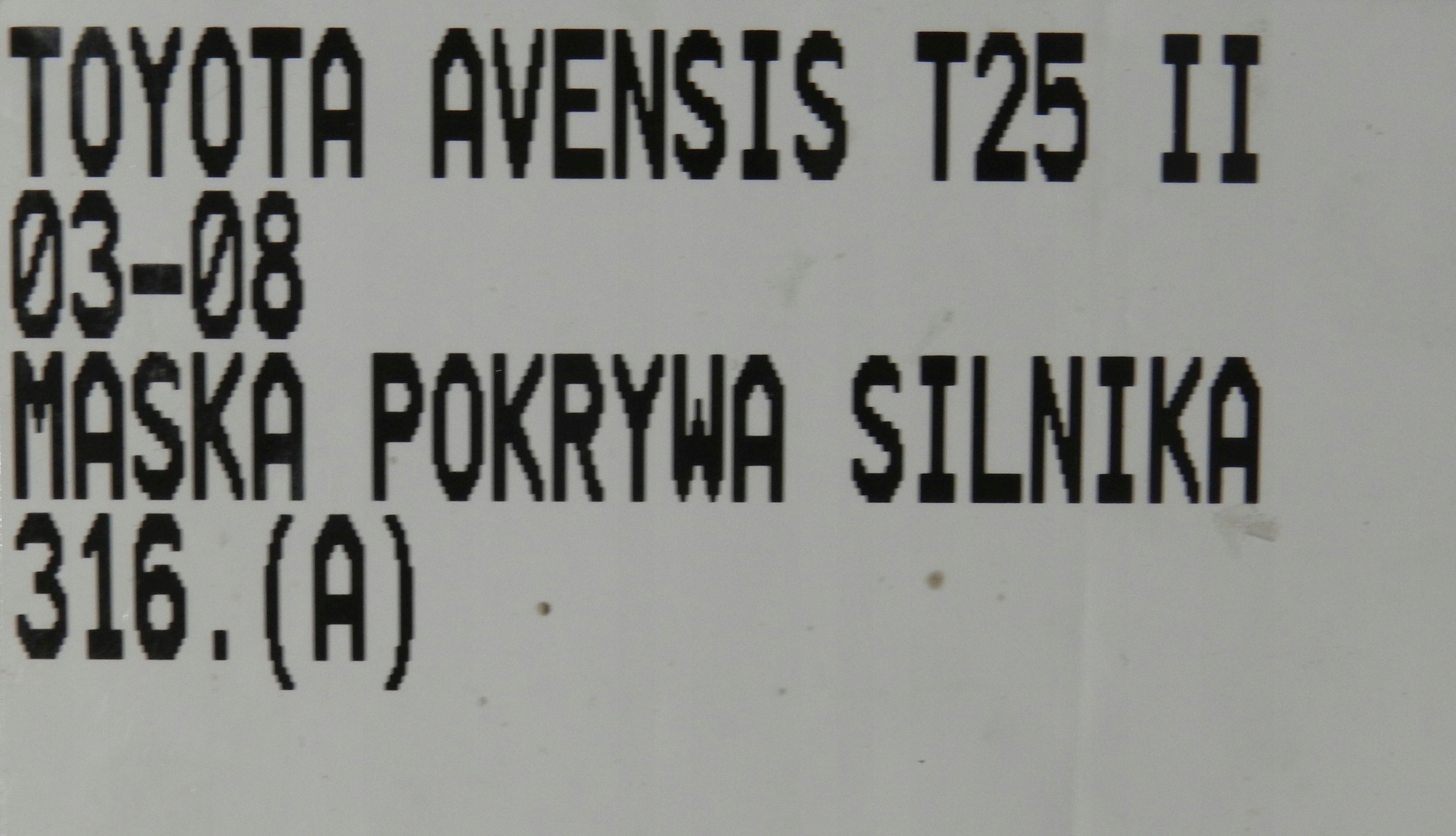 | Каталожний номер запчастини: | TOYOTA AVENSIS T25 II 03-08 MASKA POKRYWA SILNIKA |