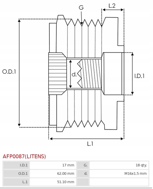 Колесо пасове генератора as-pl afp0087 літенс