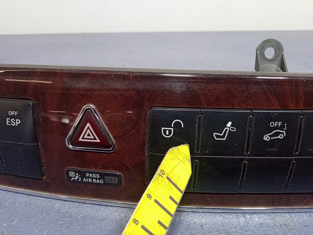Opis: przełącznik ESP, świateł awaryjnych, centralnego zamka, składnia zagłówków, rolety, grzanych foteli, zabezpieczenia przeciw odholowaniu, widoczne ślady użytkowania -jakość B && MERCEDES C KLASA W203 LIFT PANEL STEROWNIA 2038701510