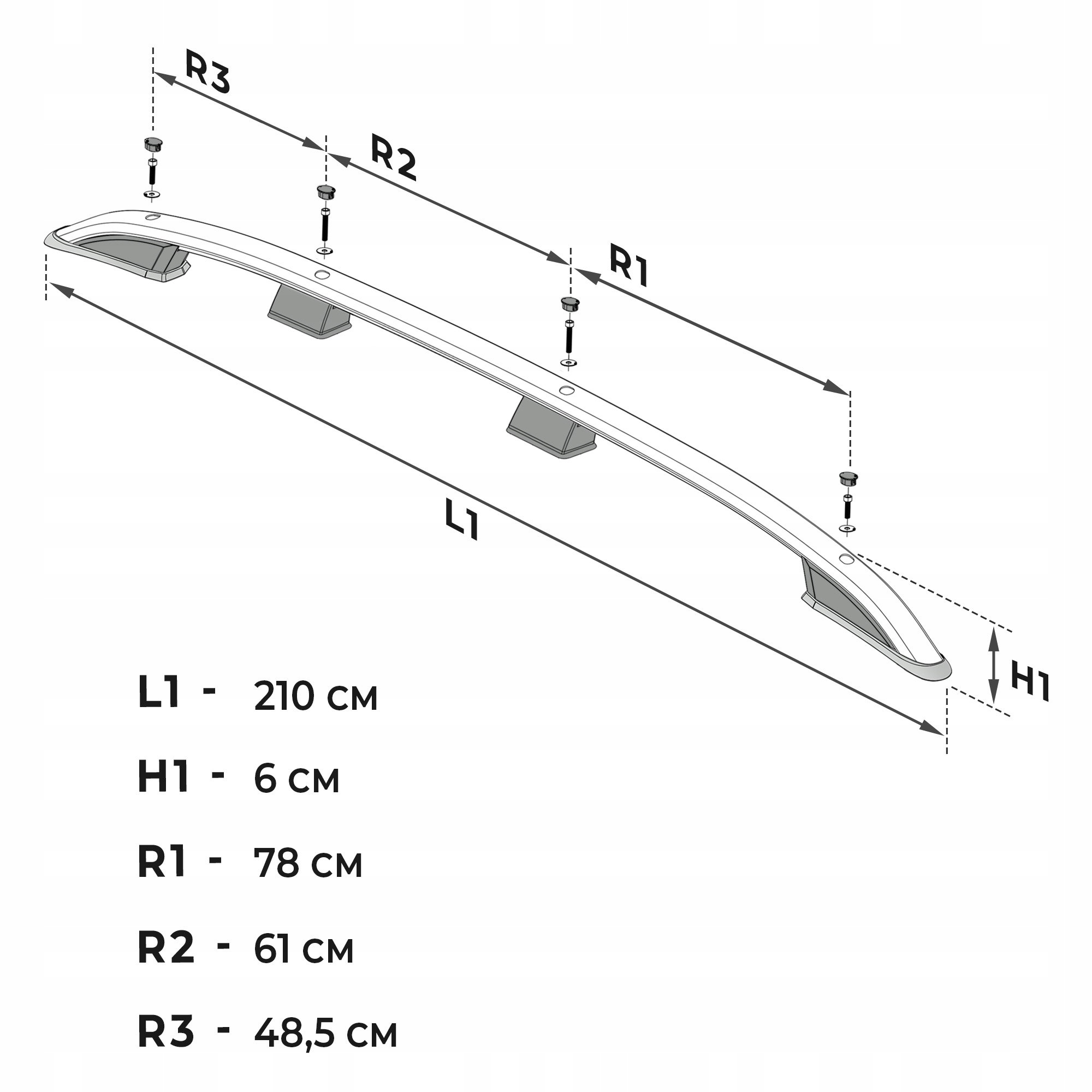 - Szybki i bezinwazyjny montaż – Relingi montowane są od góry auta w punkty fabryczne w dachu pojazdu.
