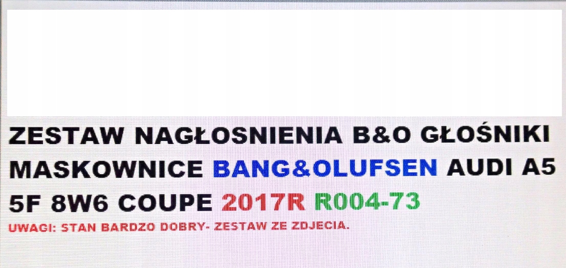 | Оригінальний каталожний номер: | B&O A5 8W6 B9 COUPE, 8W5035297, 8W6035411A, 8W5035405C, 8W0035416D, 8W6035400D, 4M0035454A, 8W0035397, 8W0035399A |
