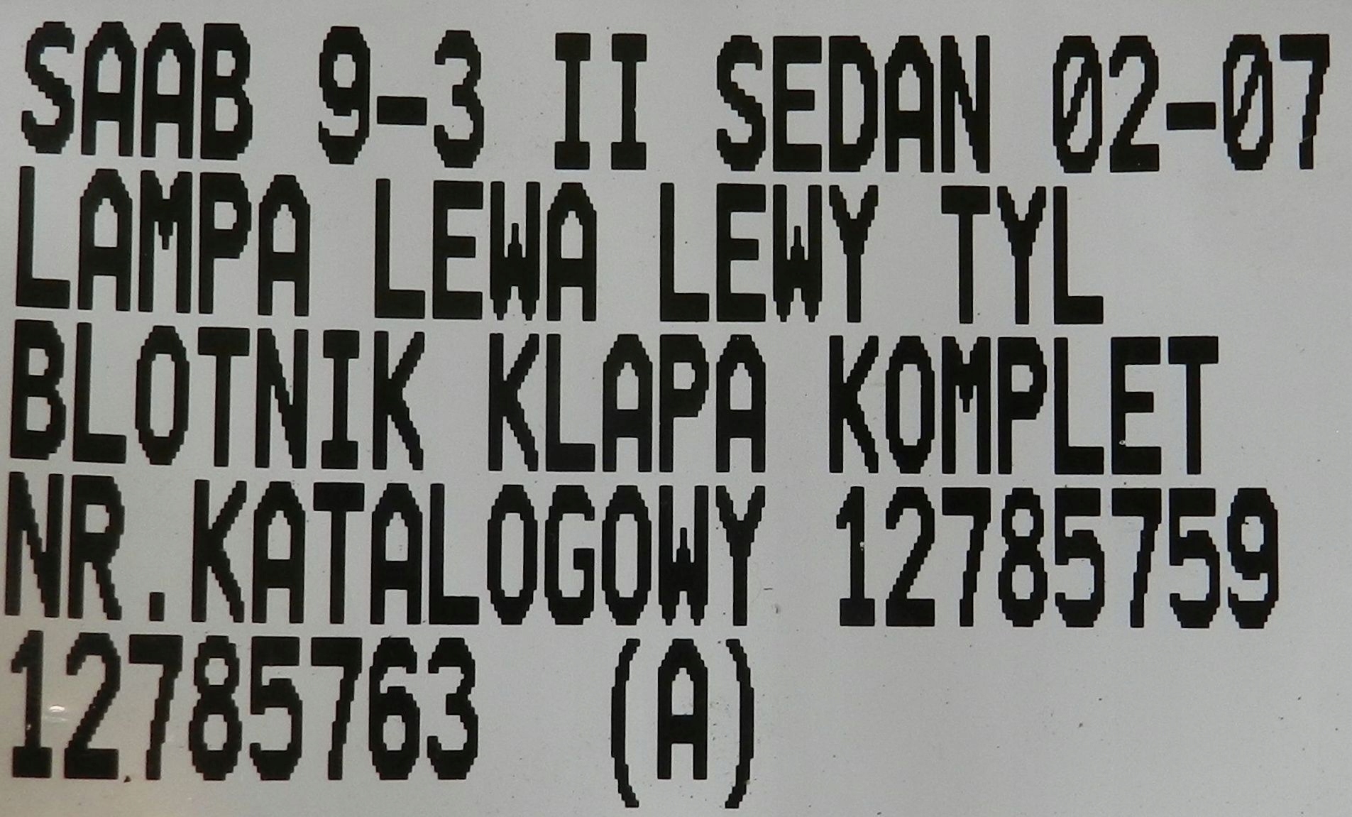 Saab 9-3 ii 02-07 sedan лампа ліва лівий зад 12785759 12785763 комплект