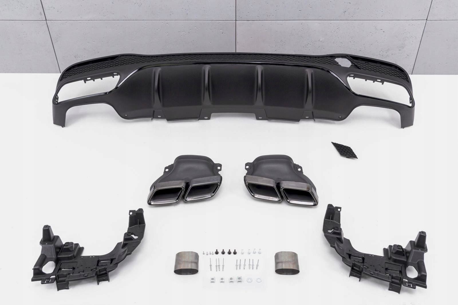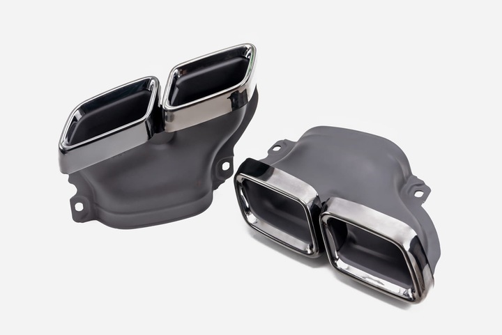 - Komplet końcówek wydechów - stylizowane na numer części OEM: A0004901800 / A0004901900. Podwójny wydech to znak rozpoznawczy modeli AMG, nieodzownie przywodzi na myśl budzące respekt, pełne mocy samochody sportowe z najwyższej półki.