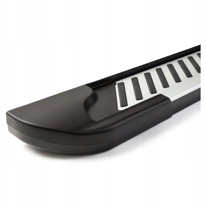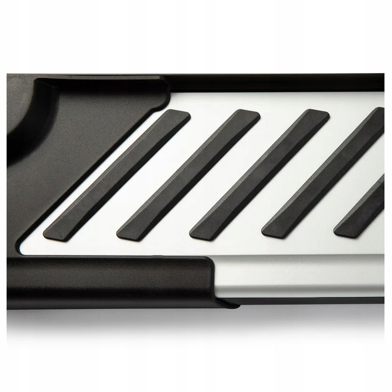 Dzięki aerodynamicznemu wzornictwu i sztywnemu profilowi wykonanemu z aluminium, progi zapewniają maksymalną nośność minimum 120kg. Nie boją się one warunków atmosferycznych, chemii czy soli drogowej, a powierzchnia antypoślizgowa zapewnia dodatkowe bezpieczeństwo..