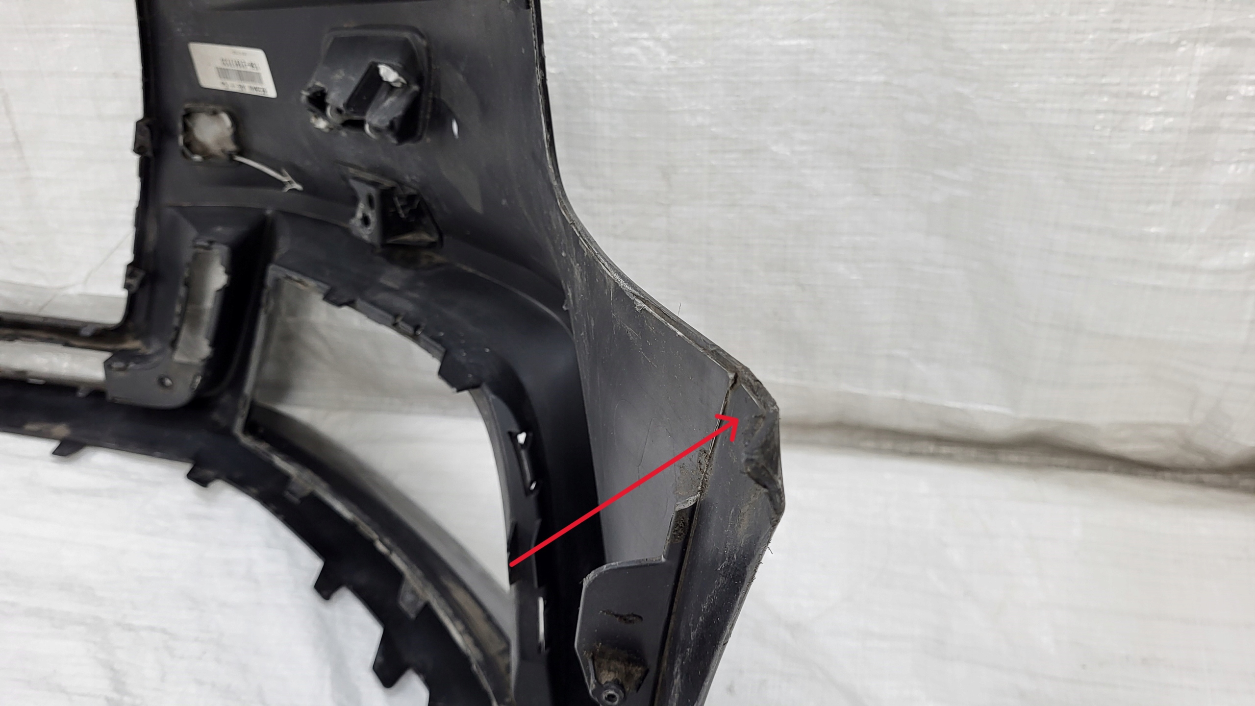 Zderzak uszkodzony w miejscach zaznaczonych na zdjęciach.