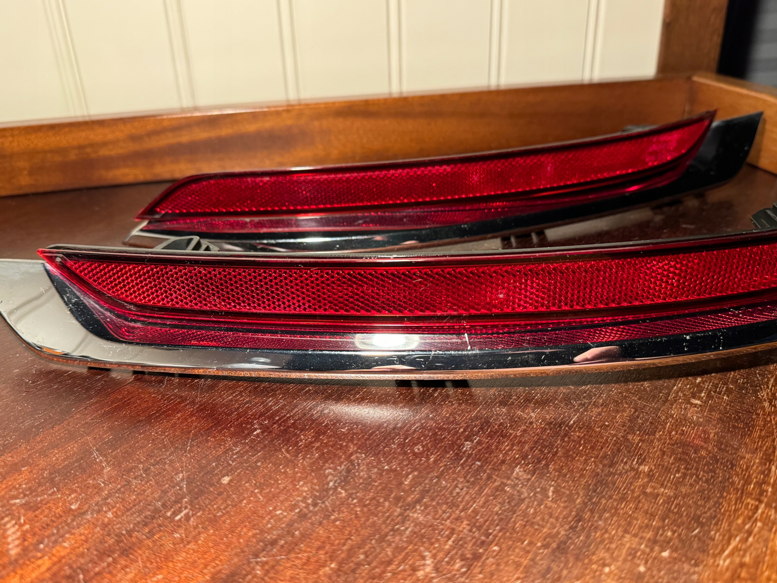 Komplet do zderzaka tylnego odblaski i chrome p/l są wszystkie w porządku jeden prawy ma lekko na chromie ślad minimalnie Volvo XC 90 16r. Foto