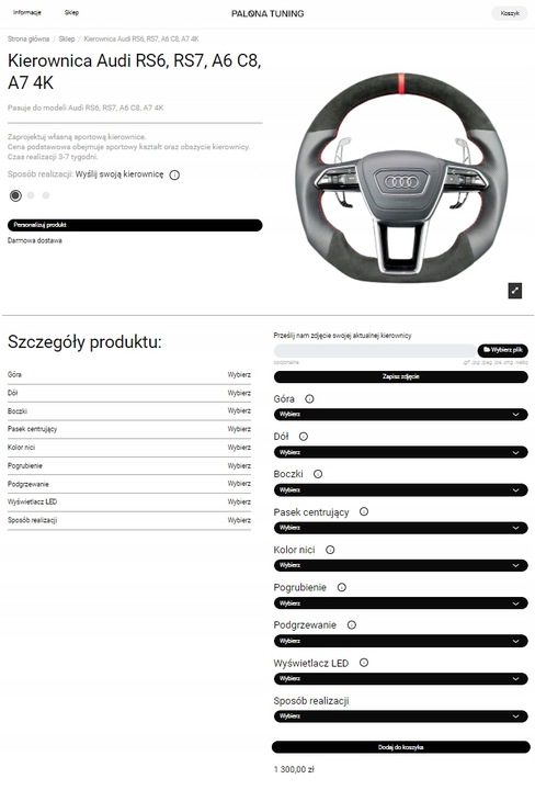 Kierownice możesz skonfigurować w łatwy sposób za pomocą naszego konfiguratora. W tym celu przejdź na stronę palonatuning.com/pl do zakładki sklep, następnie wybierz swój model samochodu i znajdź swoją kierownice. Jeżeli nie znajdziesz swojej kierownicy - zgłoś się do nas.