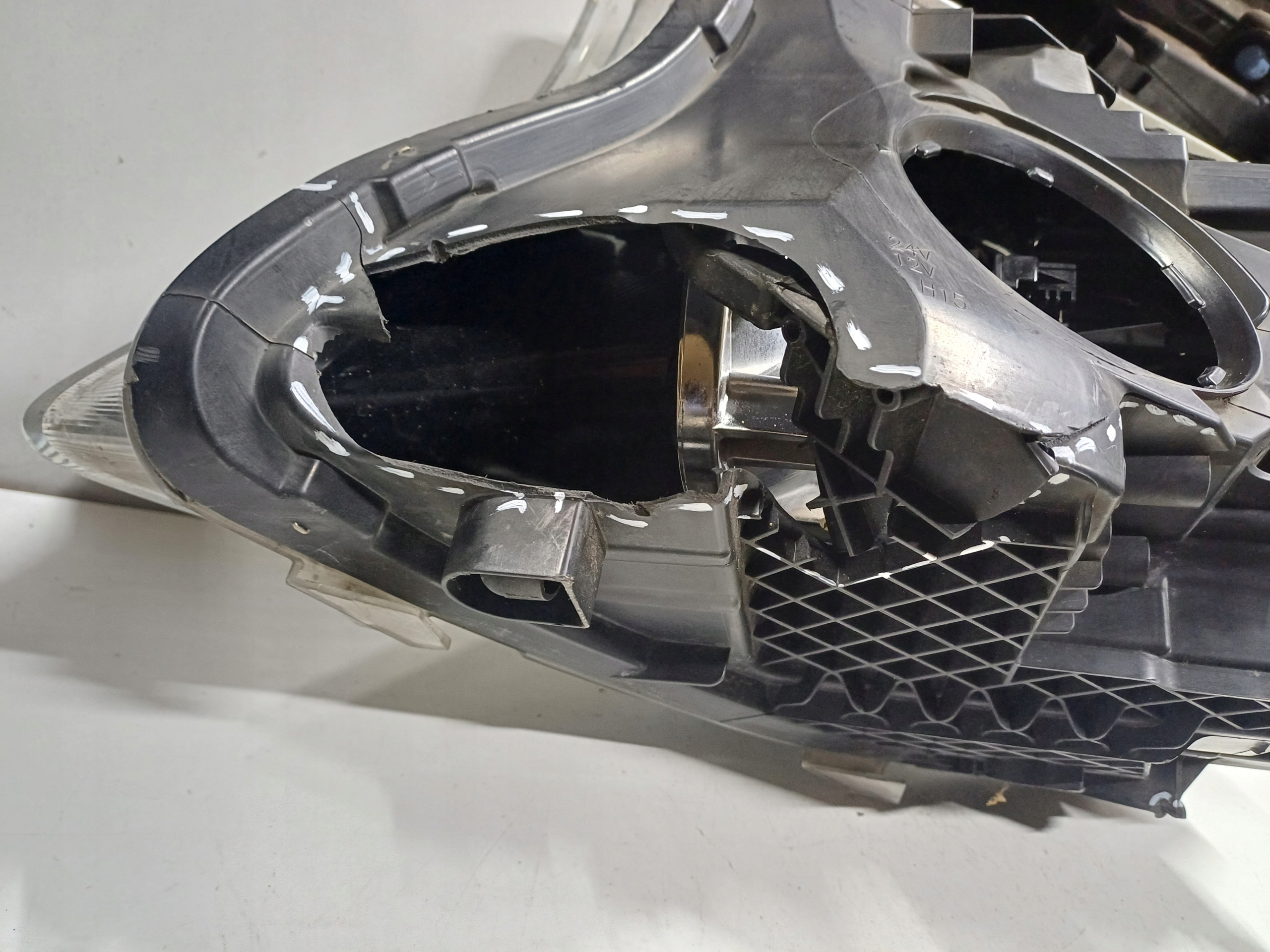 Orginalna uzywana lampa prawy przod do MERCEDES VITO W447, brak uchwytow, dziura w puszce i szkle, real foto