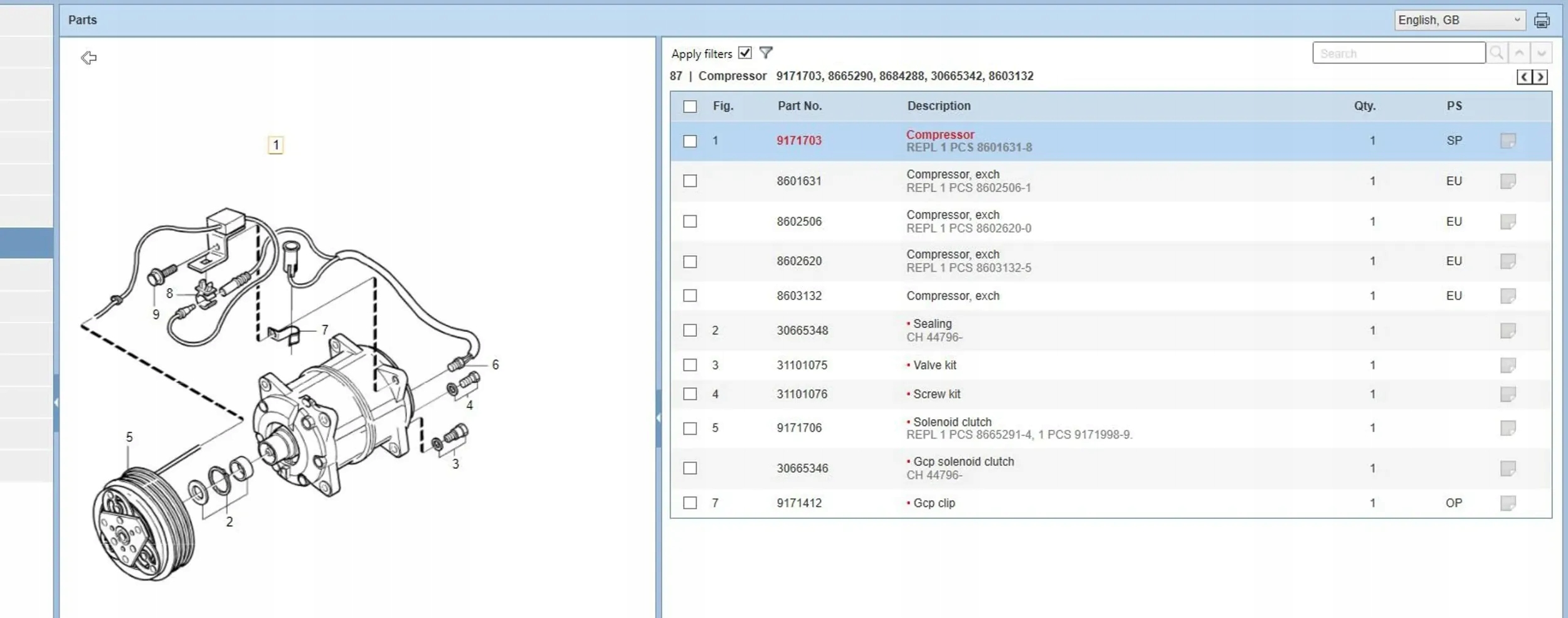 - Шукати запчастину за назвою або оригінальним номером;