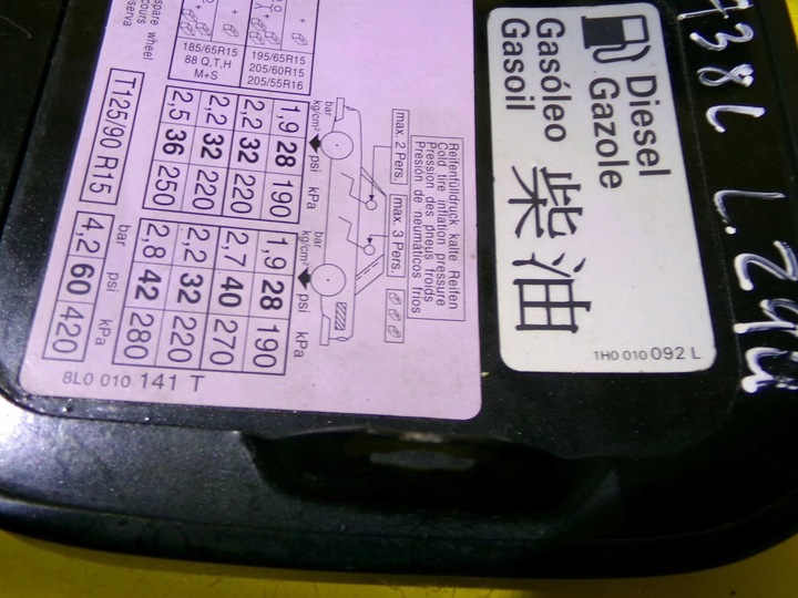 KLAPKA WLEWU PALIWA AUDI A3 8L KOD LAK: LZ9U 8L0010141T NR7