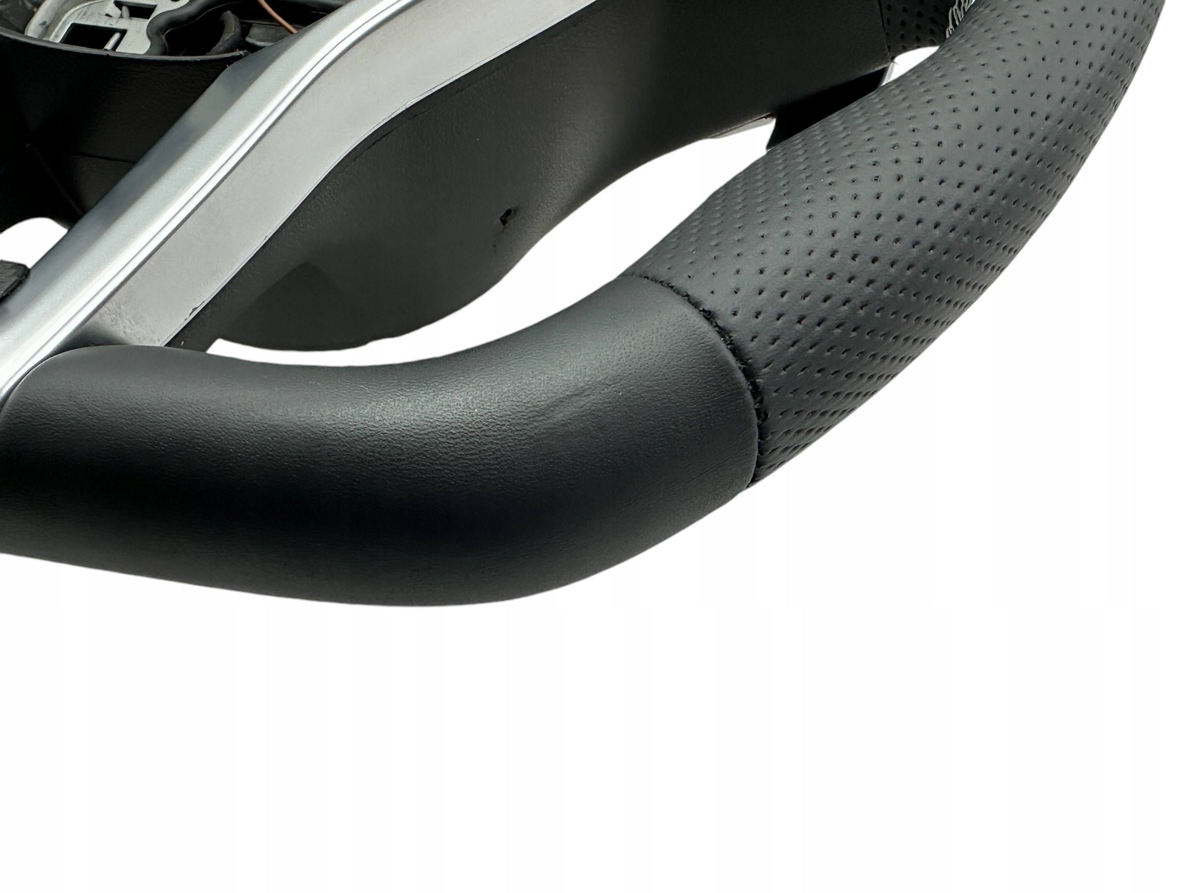 Kierownica posiada delikatne skazy widoczne na zdjęciu. Ale to nie przeszkadza w użytkowaniu.