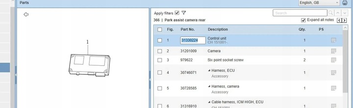 - Kod części: 31330224