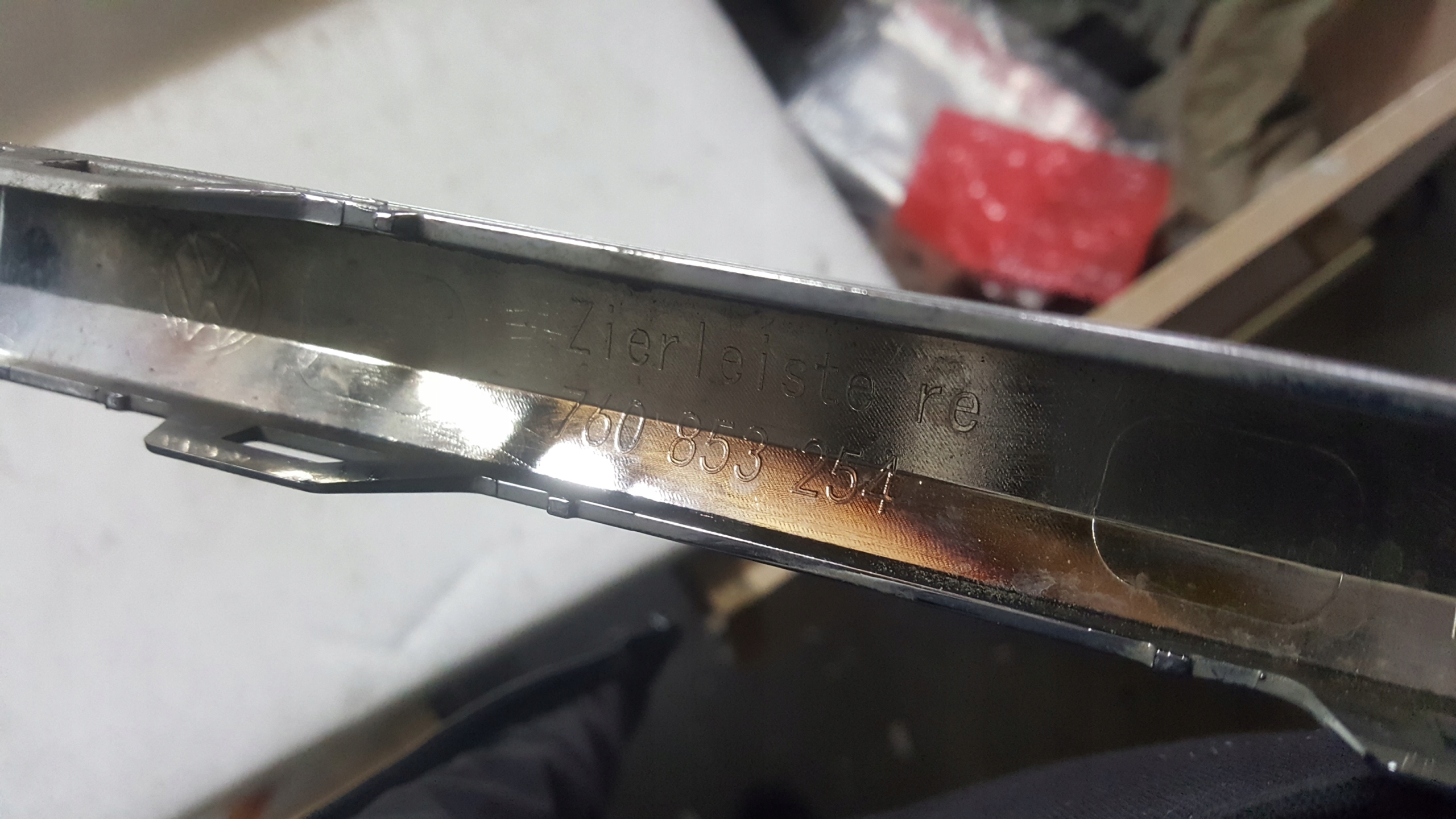 Listwa, chrom zderzaka przedniego, prawa strona-- VW TOUAREG nr. 760853254, oryginał z demontażu, stan-foto (posiada ślady użytko wania), cena za 1szt.