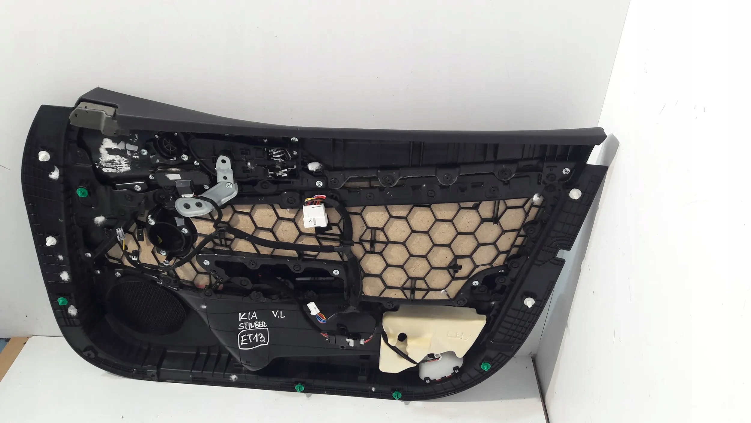 - Uwagi: BOCZEK DRZWI LEWY PRZEDNI KIA STINGER 82370-J5000, zadrapanie na chromie , u góry wgniecenie (ET13)