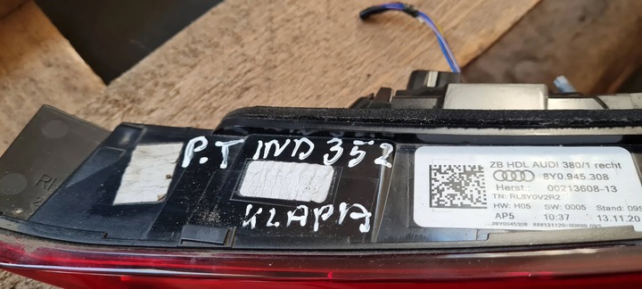 S3 8Y A3 LAMPA PRAWA PRAWY TYŁ W KLAPĘ 8Y0945308