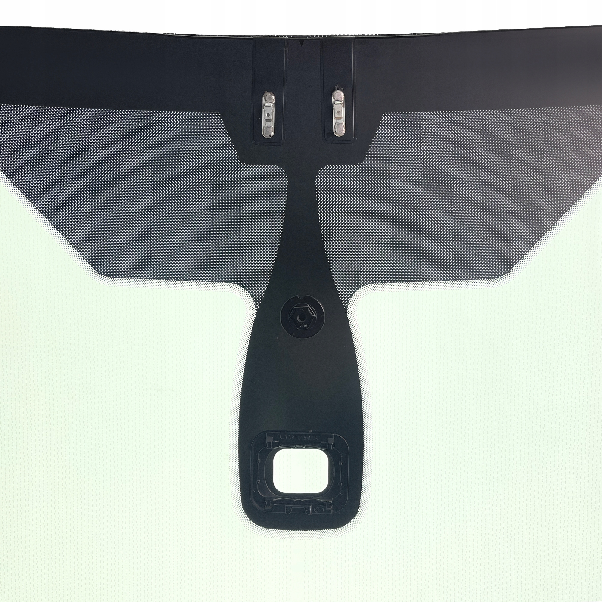 JEST TO NOWA SZYBA ZE ŚLADAMI MAGAZYNOWANIA. POWIERZCHOWNE OTARCIA NA DOLE PO STRONIE PASAŻERA, NAPRAWIONY I ZABEZPIECZONY UBYTEK U GÓRY PO STRONIE KIEROWCY.