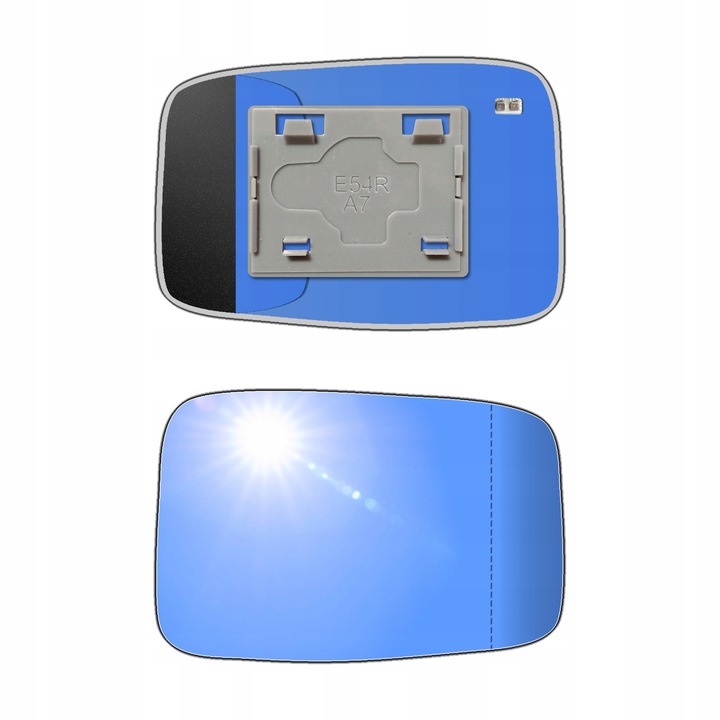 Antyrefleksyjny prawy ogrzewany wkład asferyczny lusterka - z plastikiem montażowym typu E54 i niebieskim oddalającym szkłem z grzałką