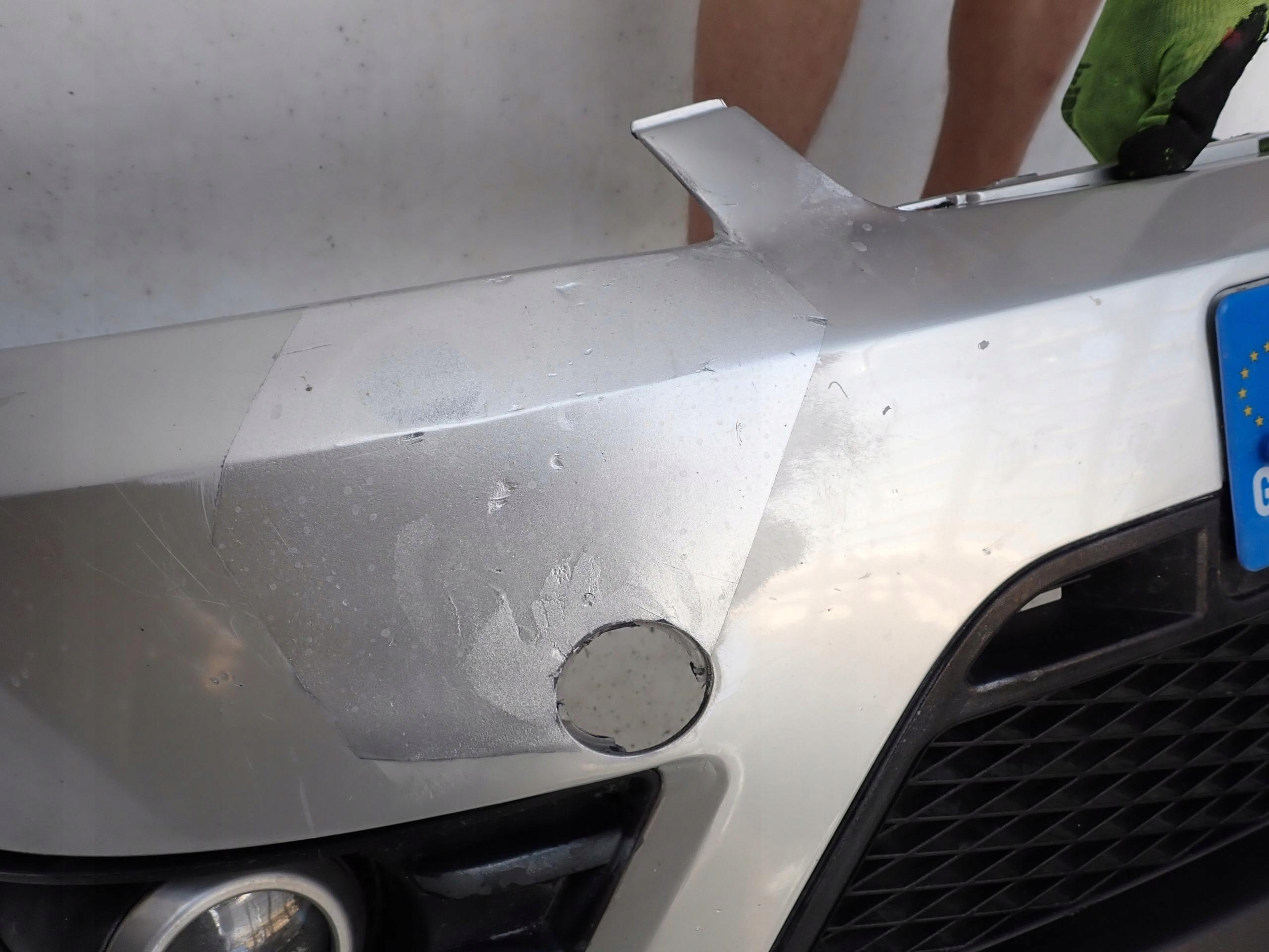 ZDERZAK KLEJONY W MIEJSCU PRZYBLIŻONYM NA ZDJĘCIACH.