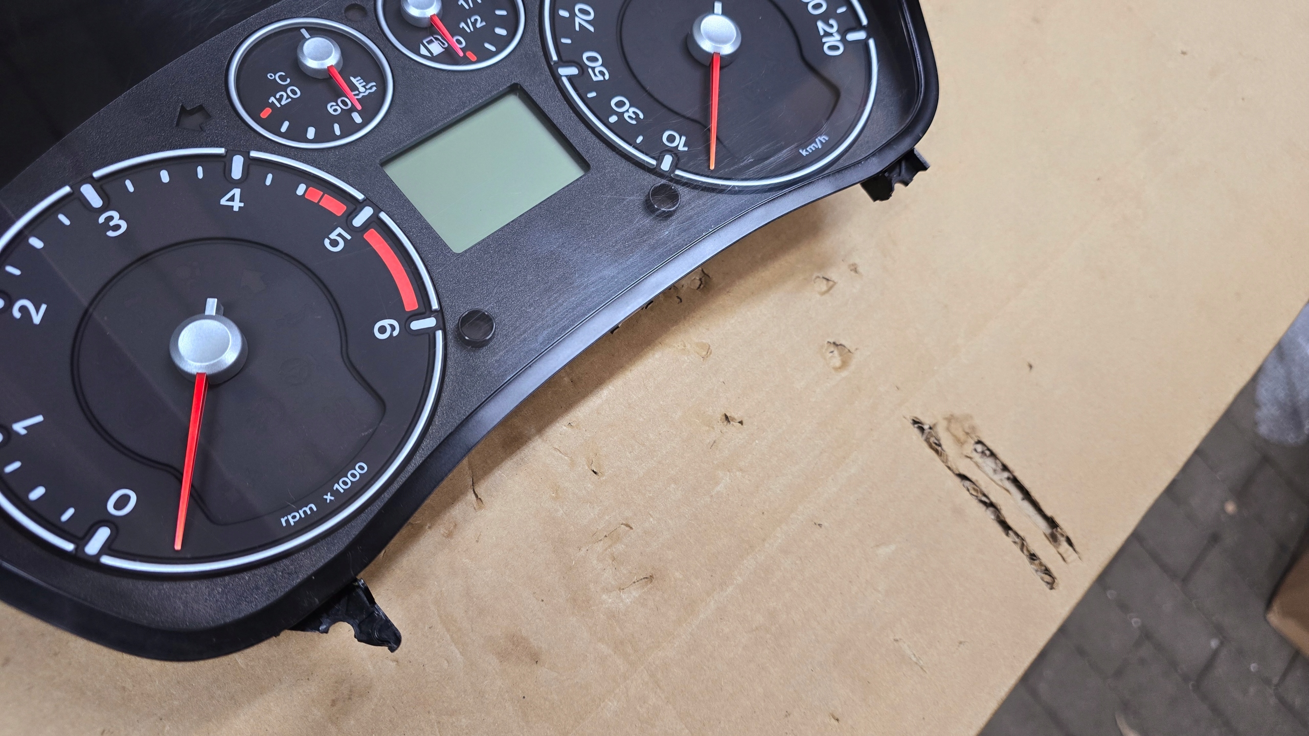 Dolne uchwyty są ułamane co zostało ujęte na zdjęciach lecz są one częścią szybki więc można ją przełożyć ze swojego licznika.